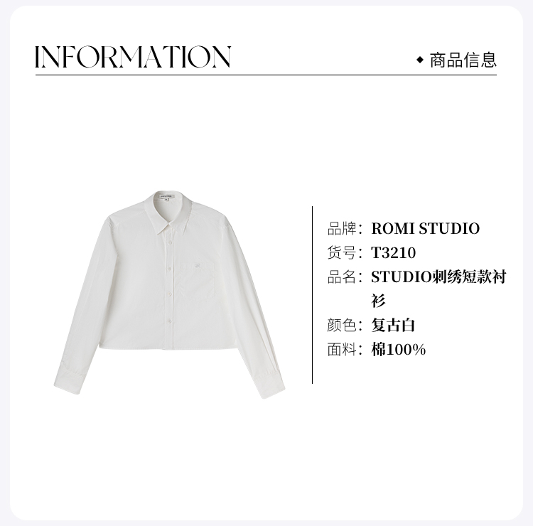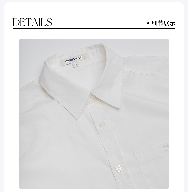 ROMI STUDIO“简约随性”100%棉刺绣短款法式宽松复古白衬衣T3210