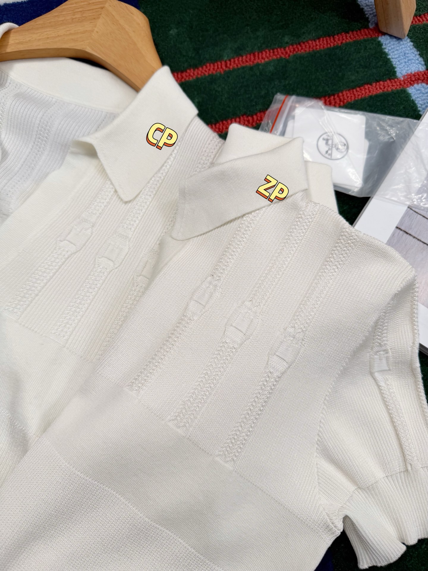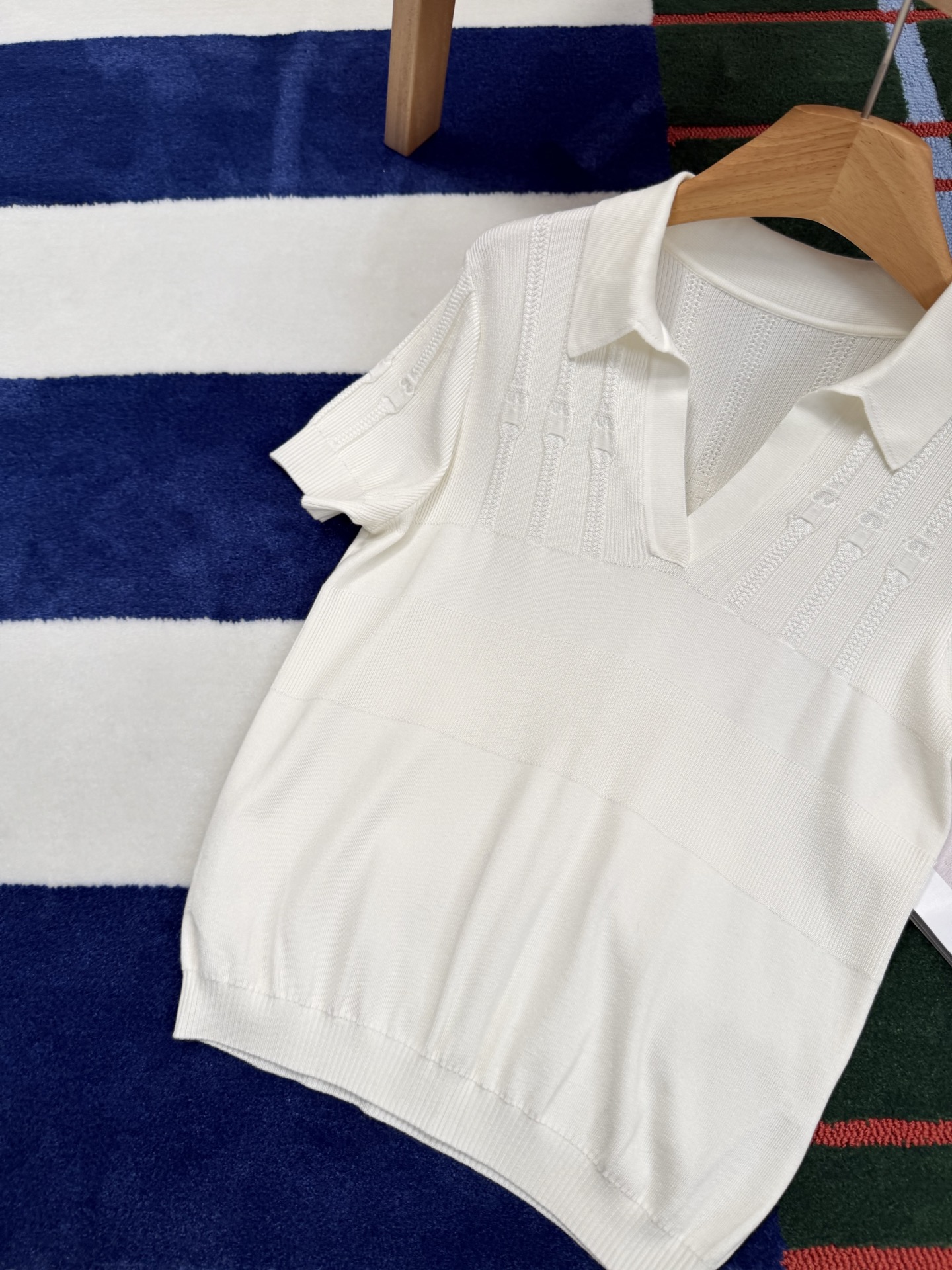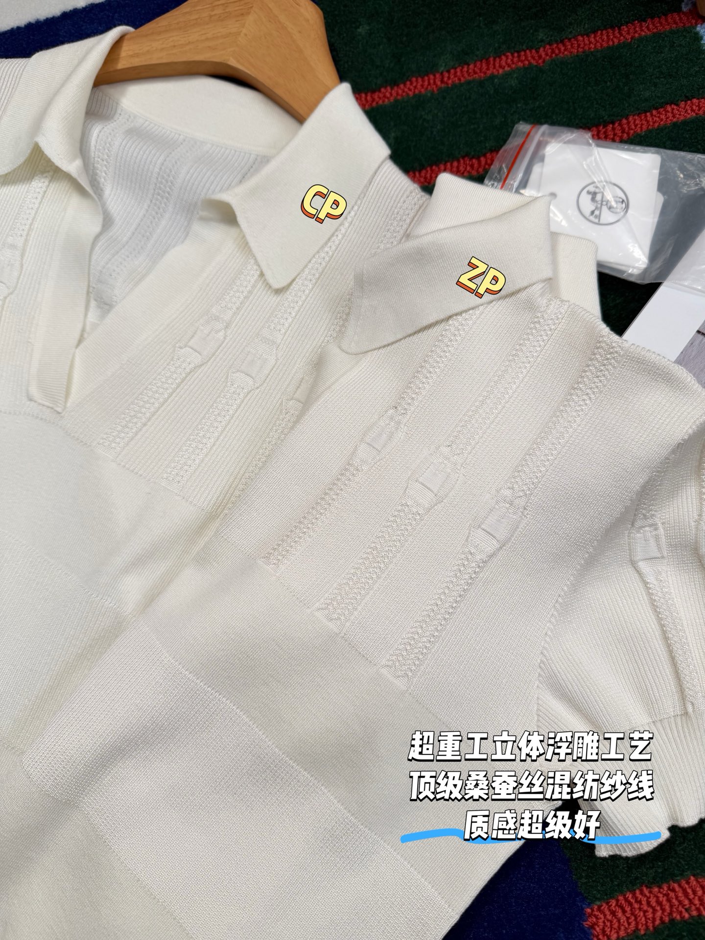 最新款 白色针织polo衫,白色是质感的神,休闲松弛感拉满〰️ 精致的绞花花纹设计突显工艺与现代美学,超时髦🧳特殊定制纱线,真的很百搭✨妥妥的时髦精,简约的基调,利落版型剪裁,单穿显瘦叠穿松弛,细节之处更显高级✨买到赚到的一款针织衫,你值得拥有,码数SML