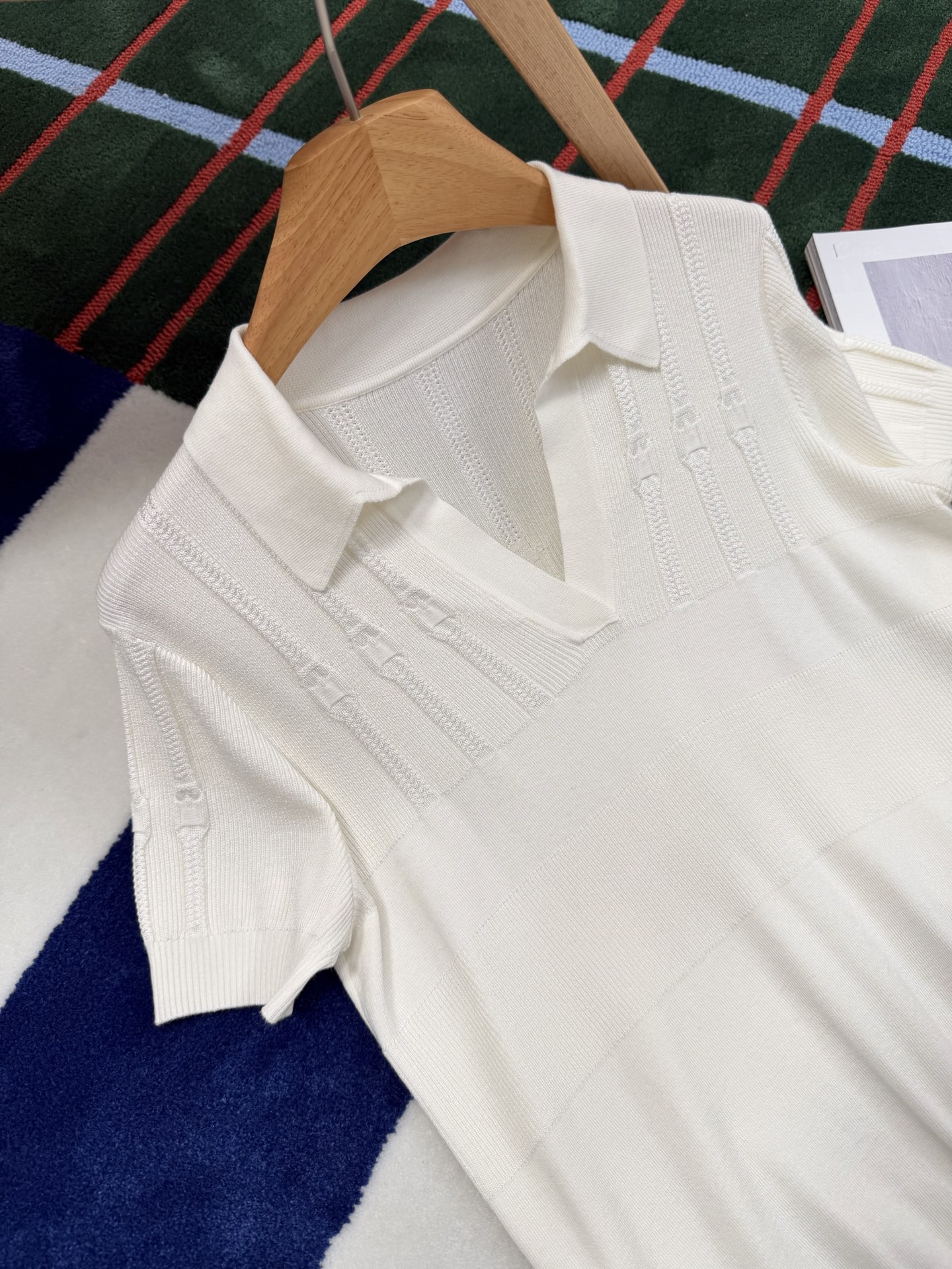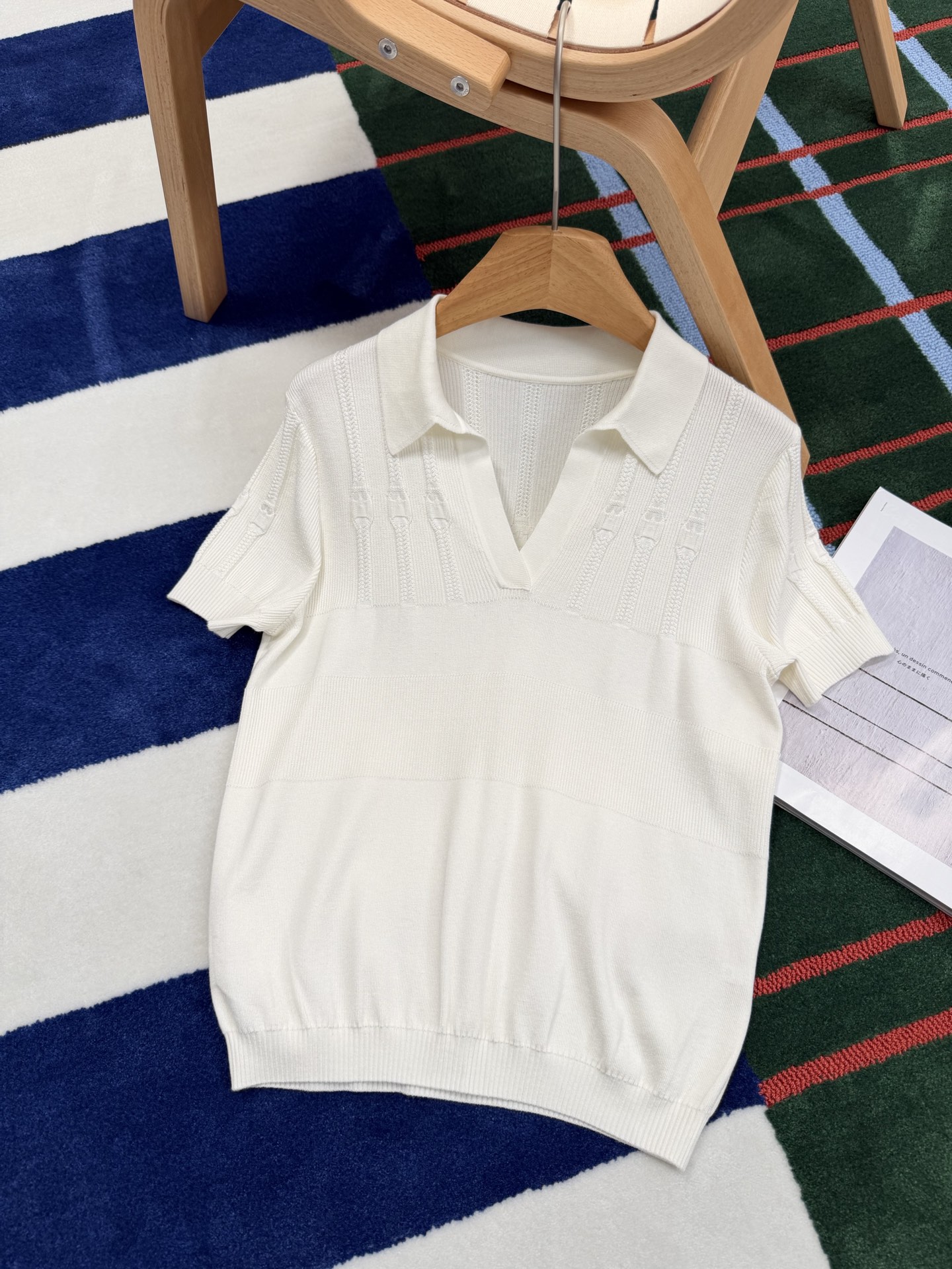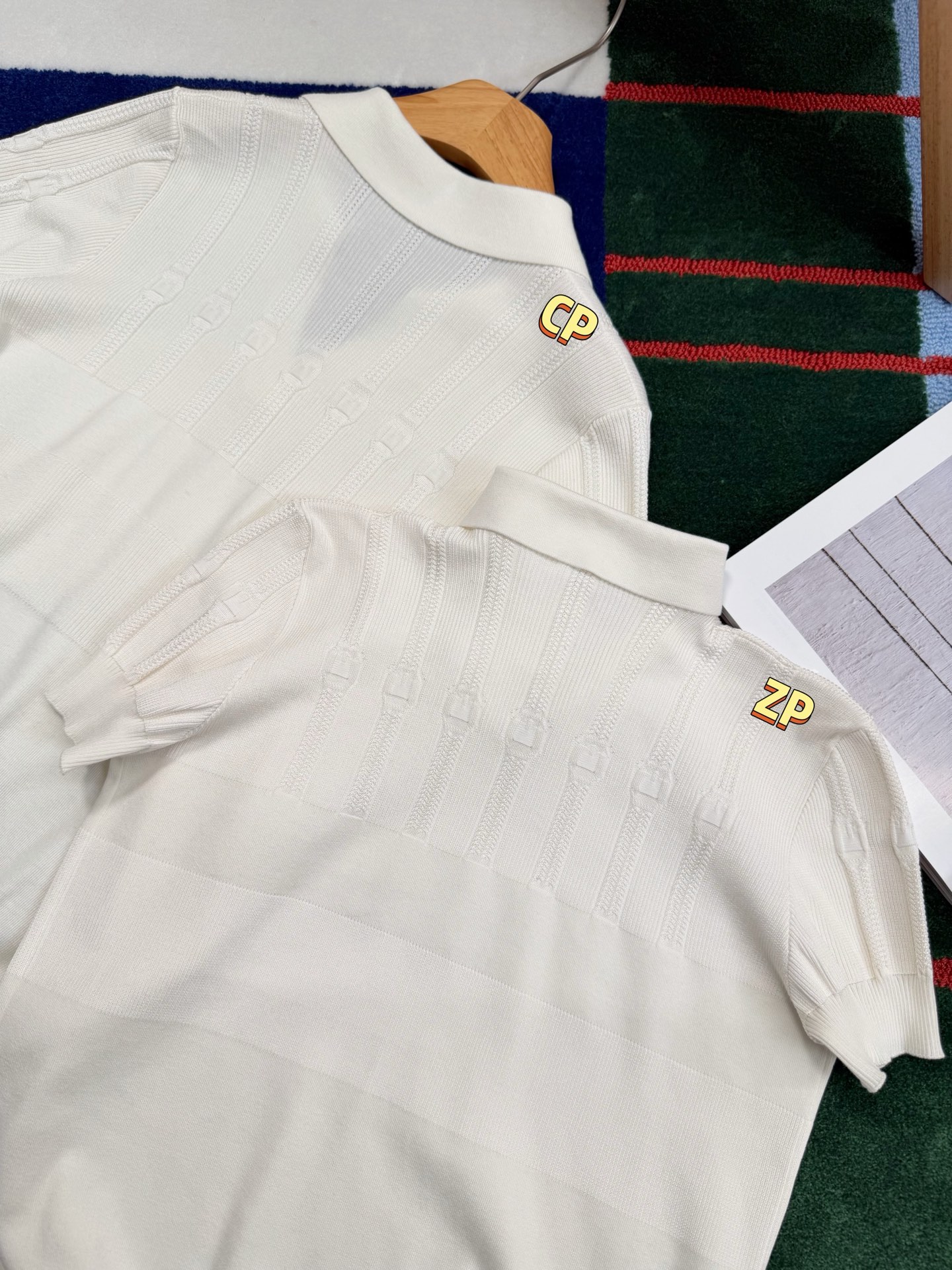 最新款 白色针织polo衫,白色是质感的神,休闲松弛感拉满〰️ 精致的绞花花纹设计突显工艺与现代美学,超时髦🧳特殊定制纱线,真的很百搭✨妥妥的时髦精,简约的基调,利落版型剪裁,单穿显瘦叠穿松弛,细节之处更显高级✨买到赚到的一款针织衫,你值得拥有,码数SML