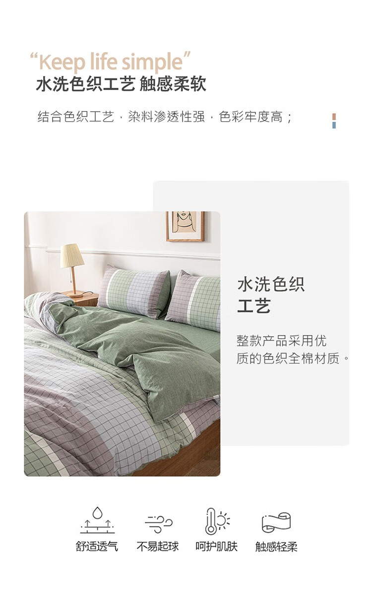 無印水洗色织全棉四件套-艺术格调经典格子MUJI-TJ23-08
