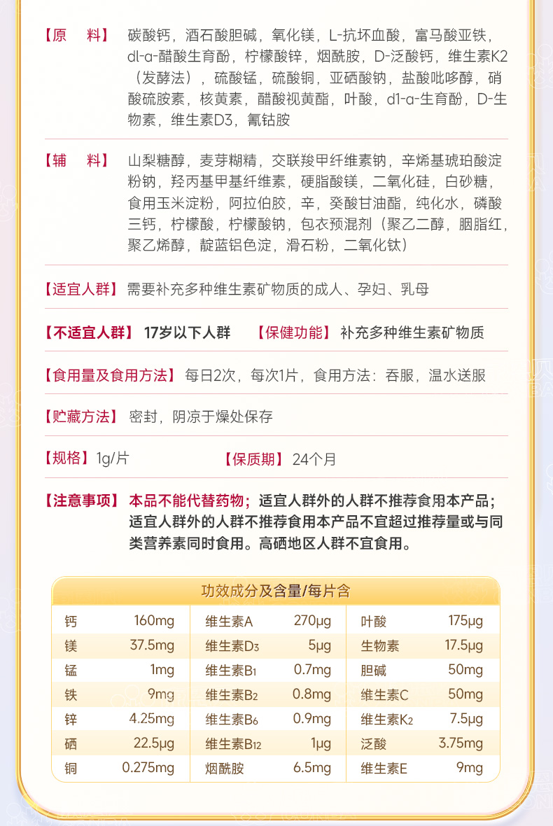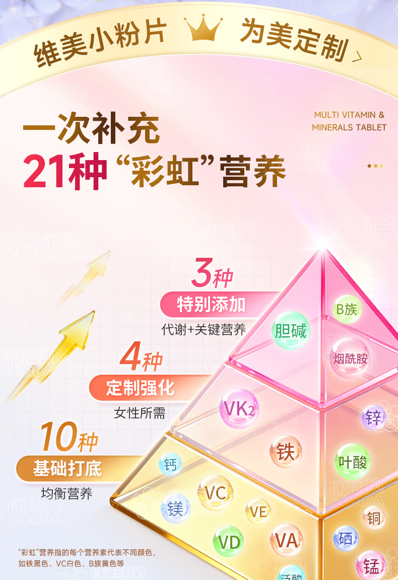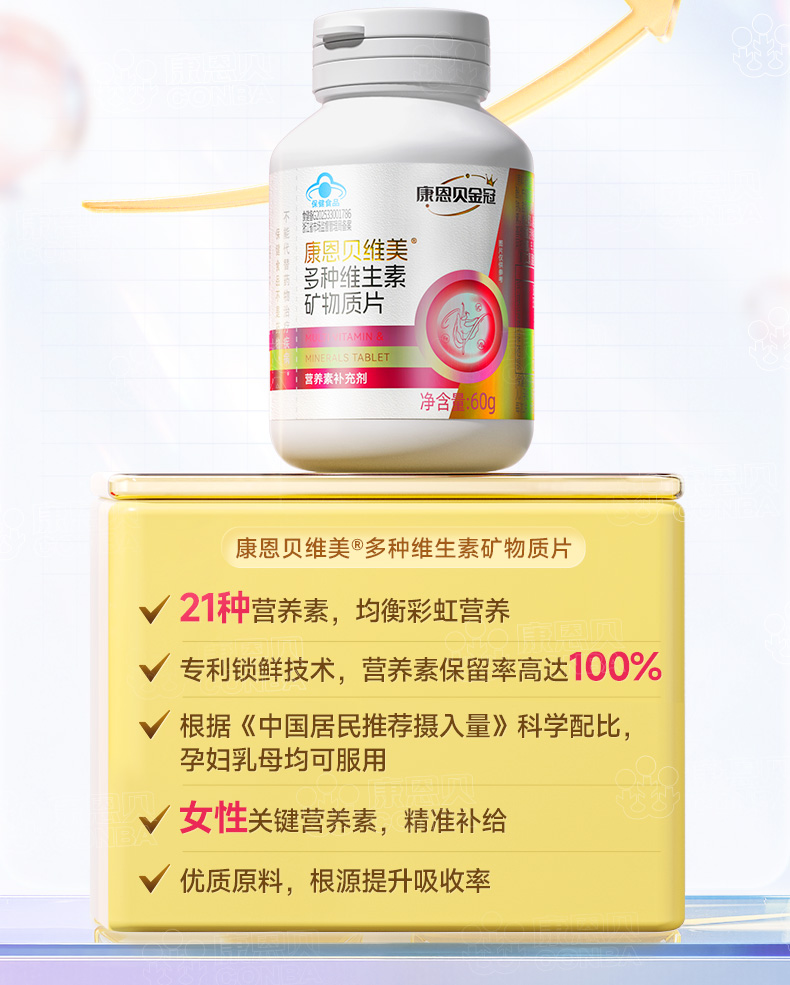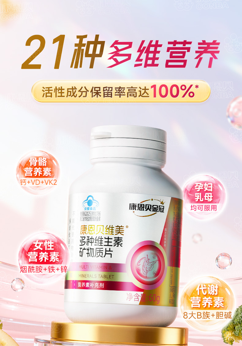 康恩贝金冠女士多维一次补充21种营养配料干净