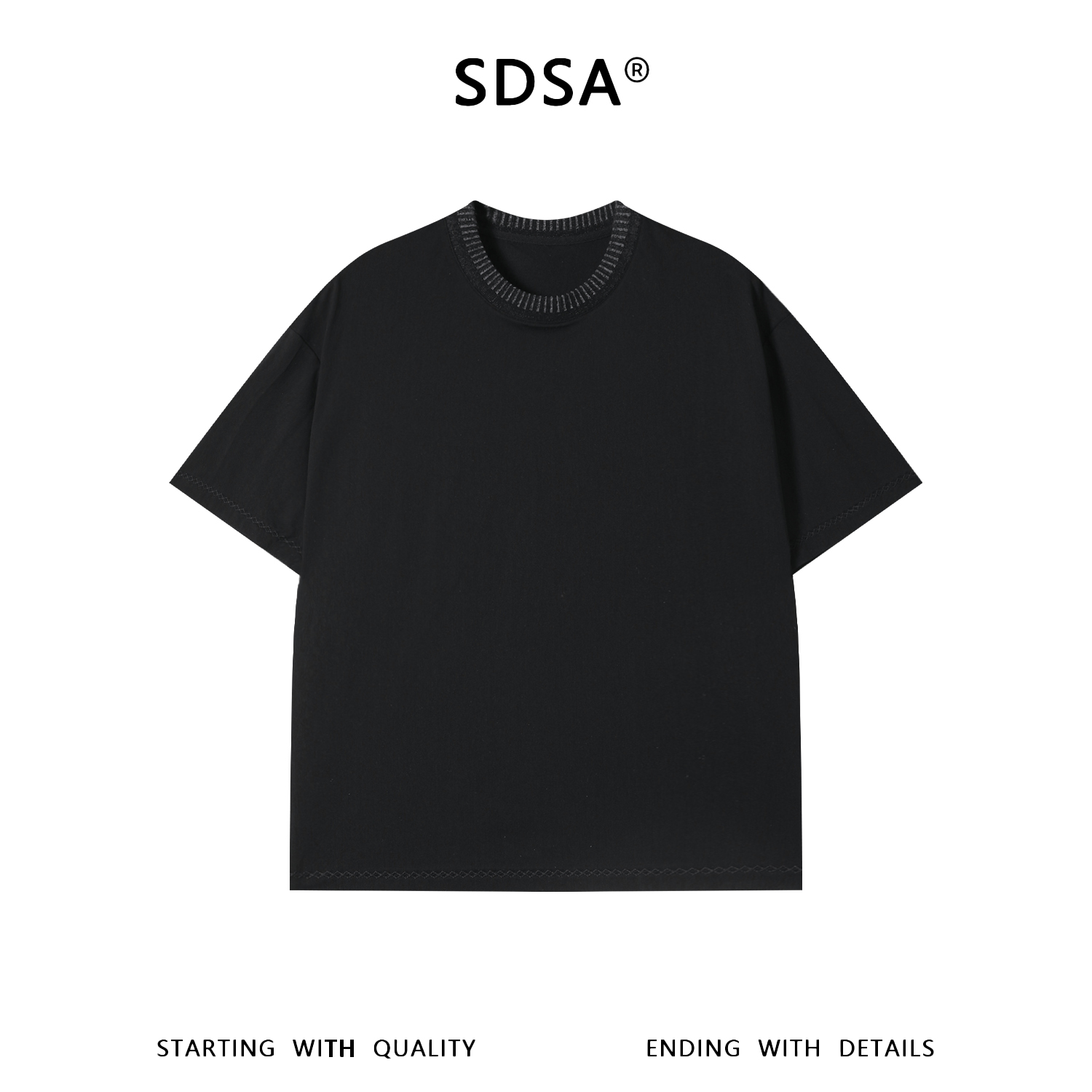 SDSA男装2026新款轻奢韩系简约拼接撞色领口设计圆领短袖T恤百搭