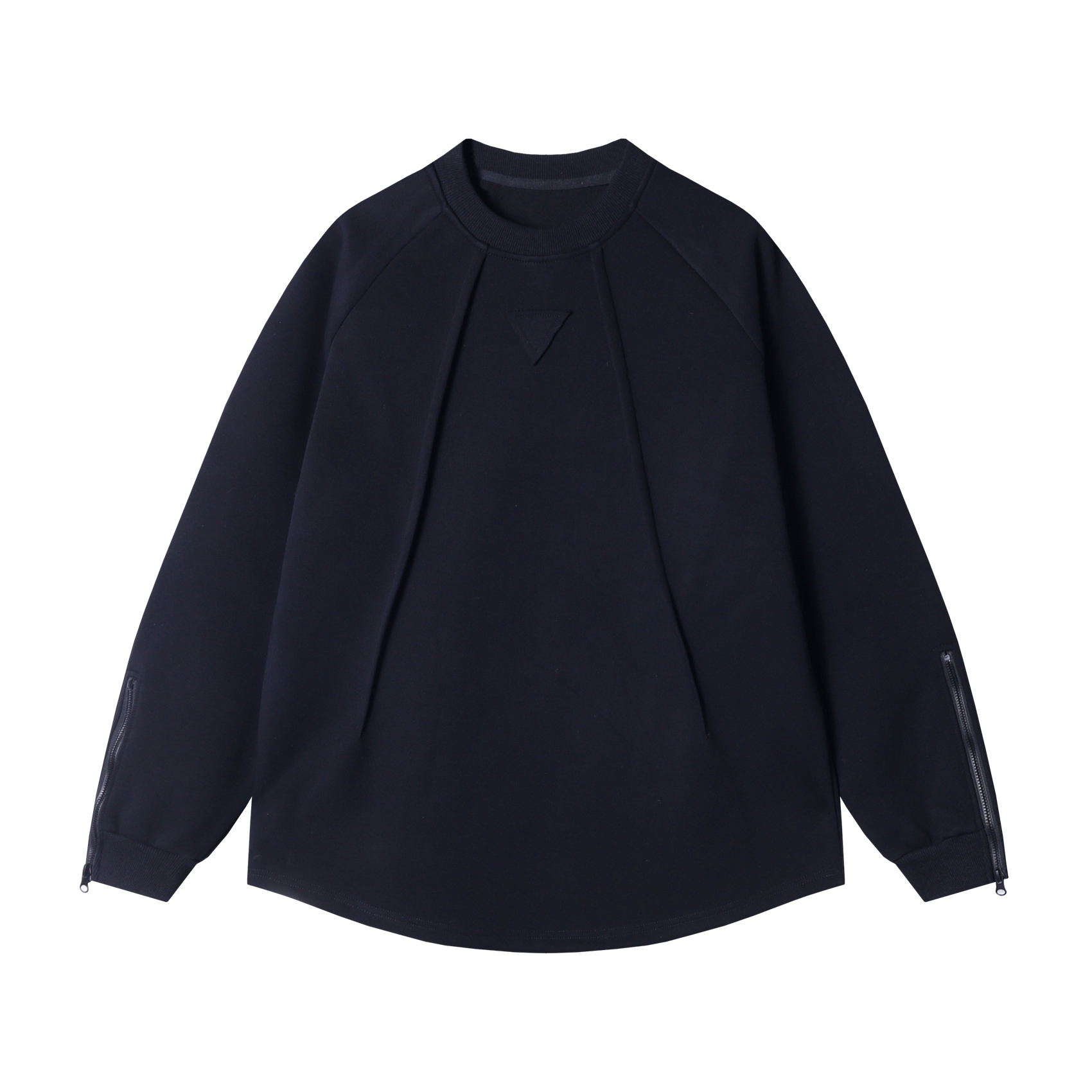 WY899秋冬季新款时尚个性韩版褶皱倒三角圆领长袖T恤拉链袖高级百搭
