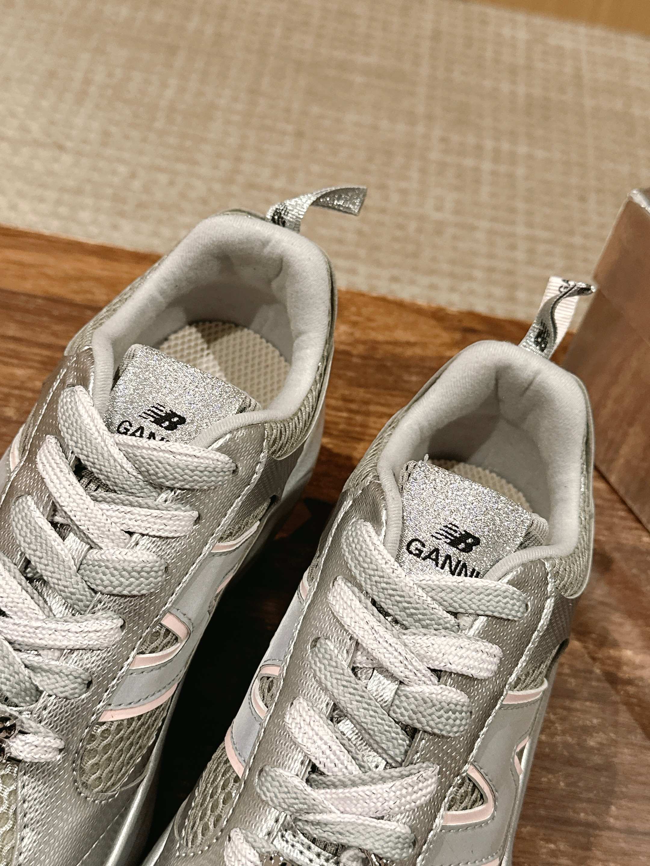 𝐆𝐀𝐍𝐍𝐈 ✖️𝐍𝐄𝐖 𝐁𝐀𝐋𝐀𝐍𝐂𝐄 这款联名 中国限定款蛋壳鞋银粉色的,也是双鞋带