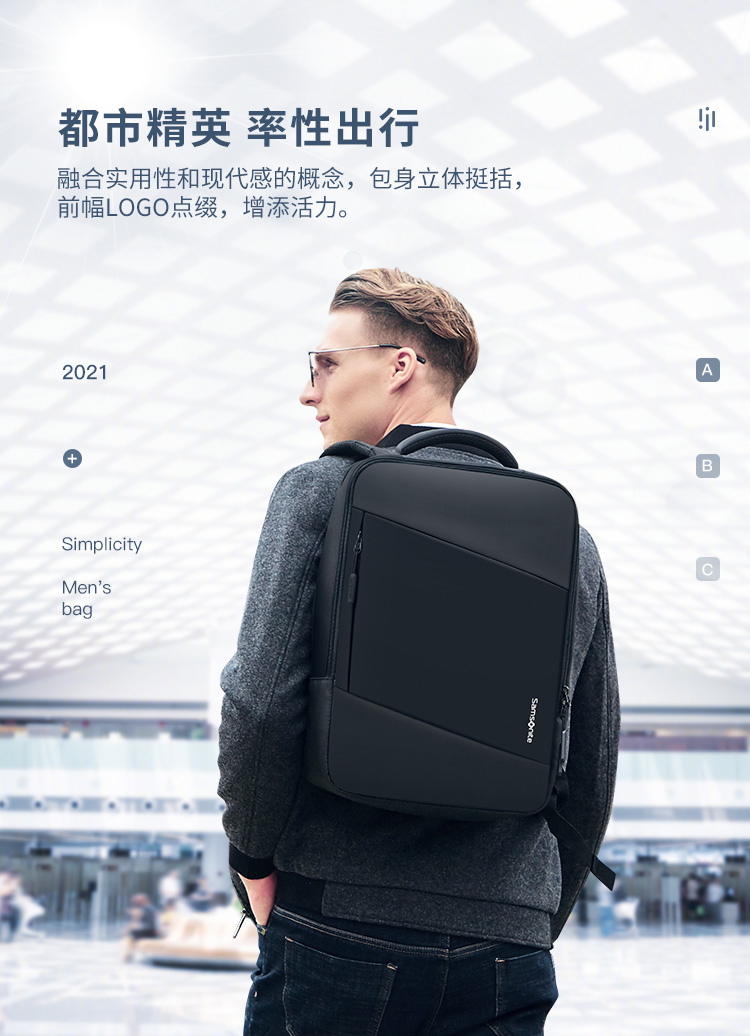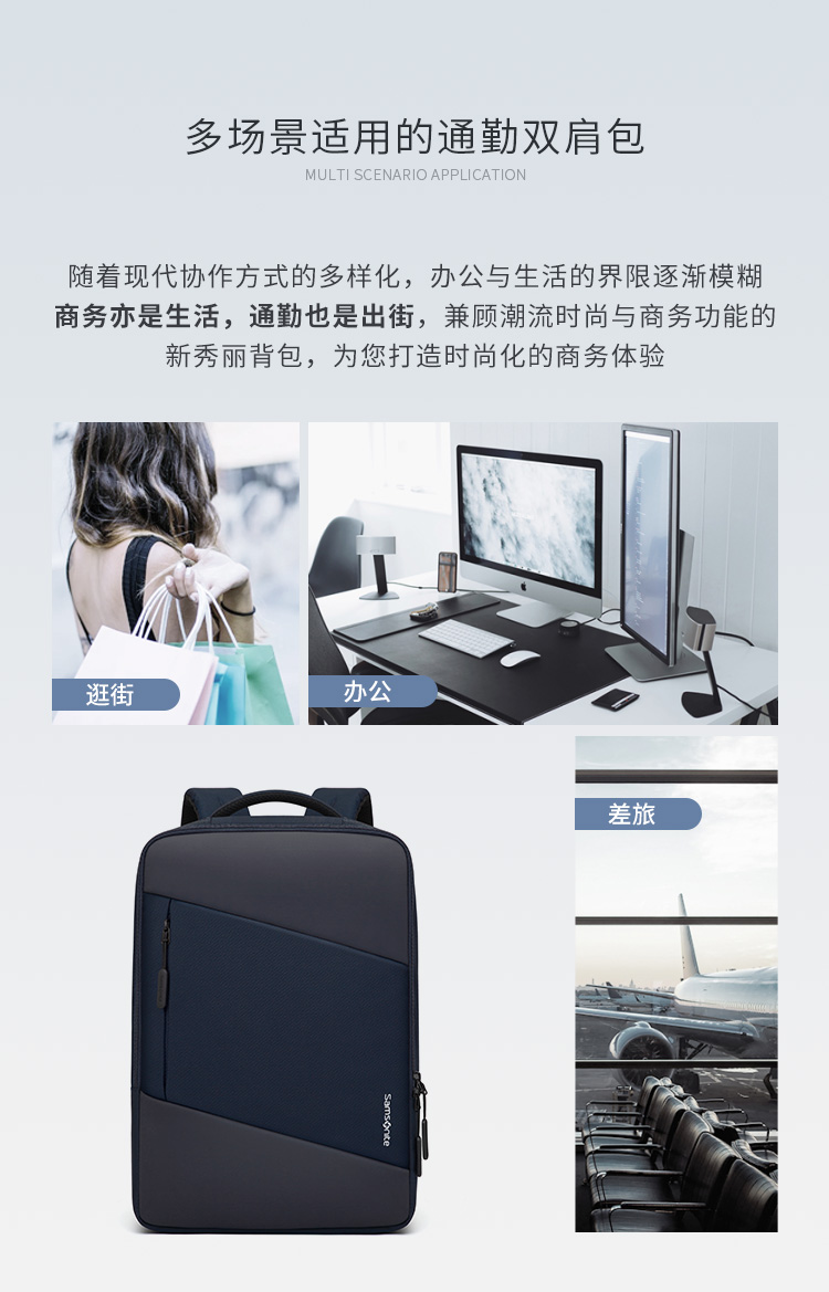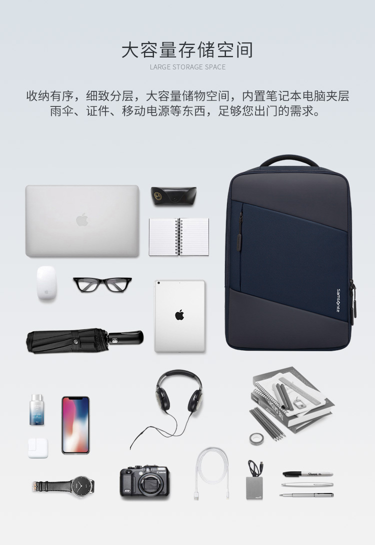 新秀丽(Samsonite)双肩包电脑包15.6英寸男士商务背包书包旅行包笔记本包 BT6*11001蓝色