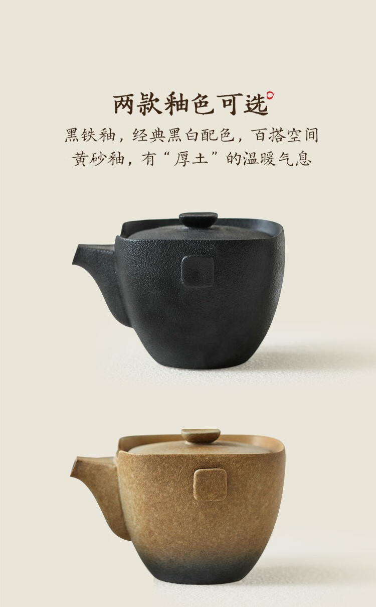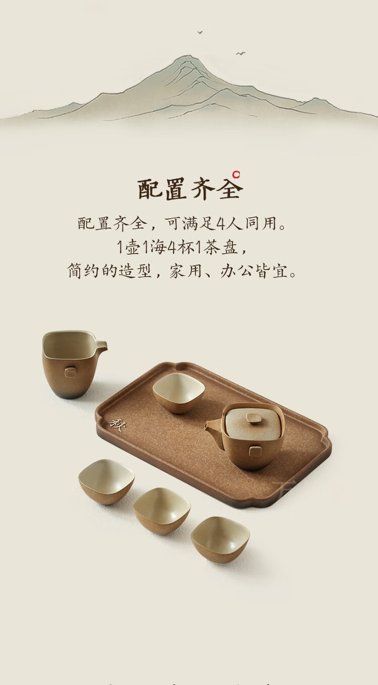 万仟堂 茶具套装 家用整套功夫茶具套装礼品4人用茶具 带茶盘四方团圆A 黄砂釉+黑铁釉