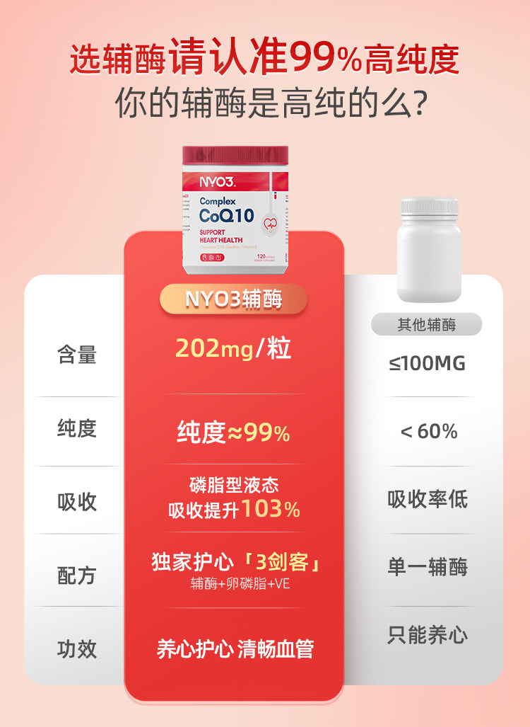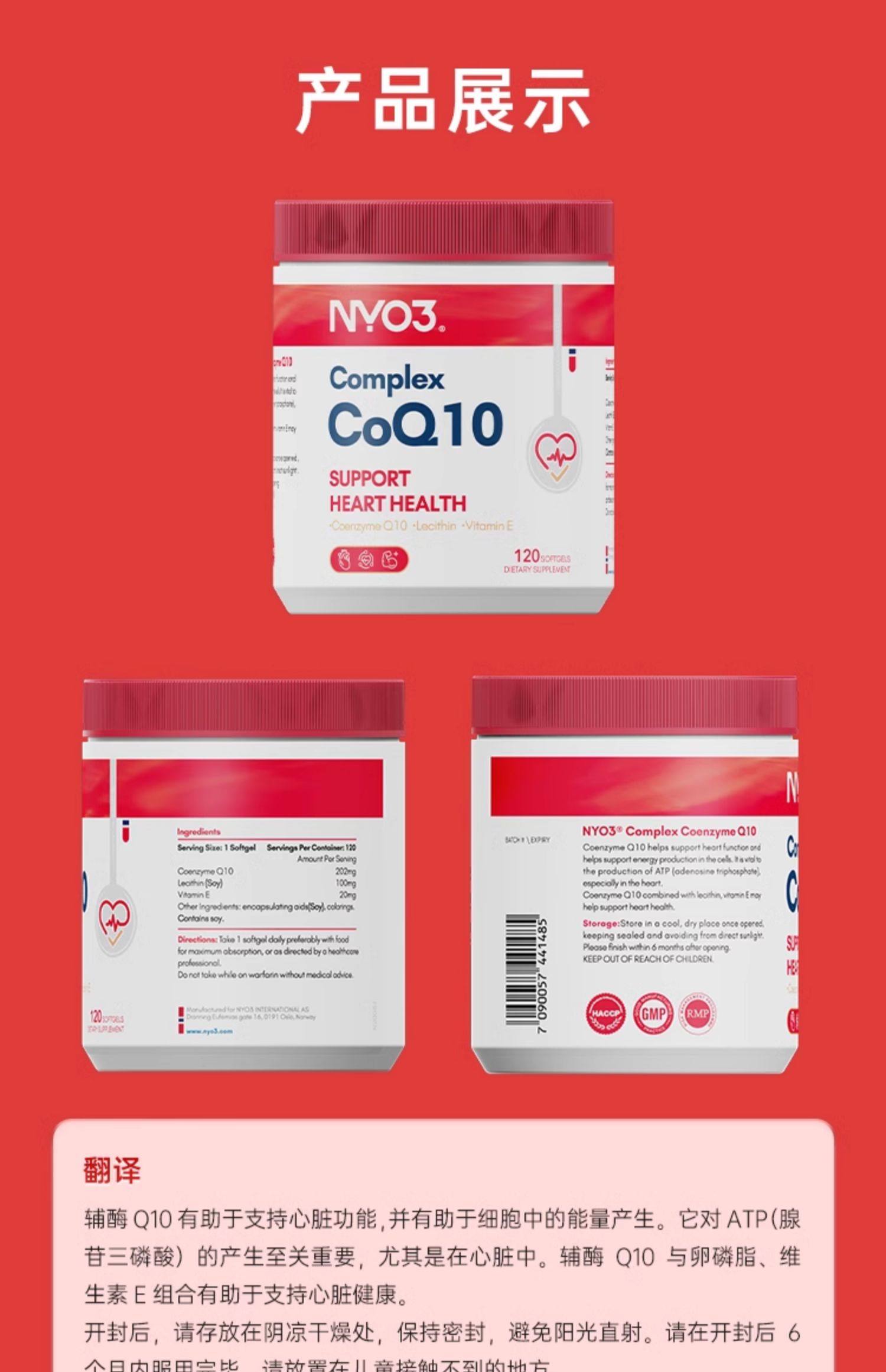 NYO3辅酶q10泛醌挪威原装进口心血管保护心脏官方旗舰店正品120粒