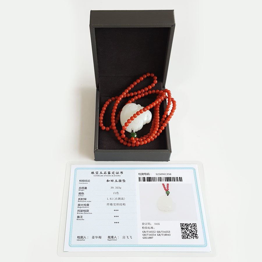 名称 | 天然新疆料细腻一级白油润度佳如意(万事如意)和田玉吊坠项链 |