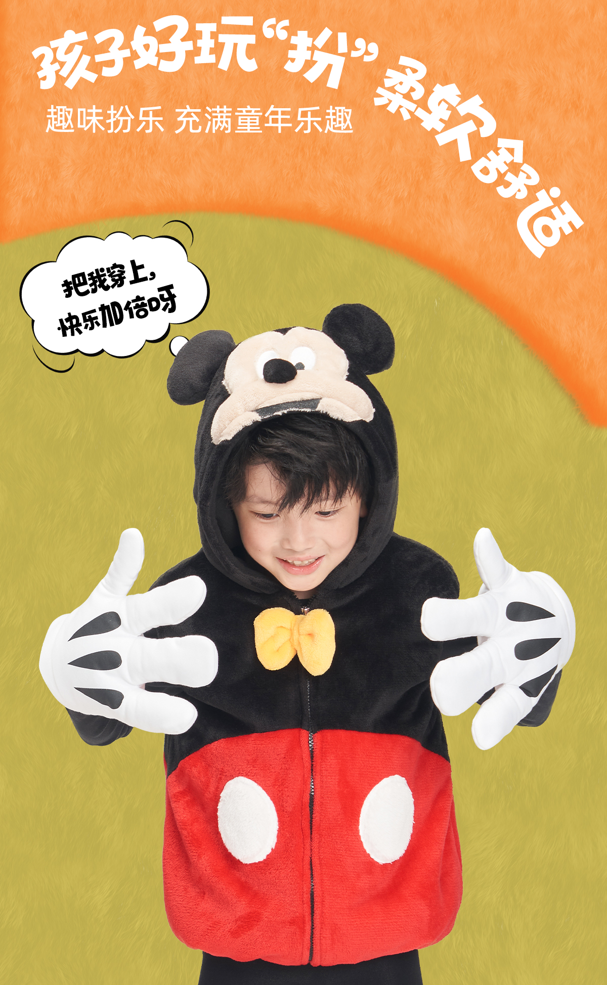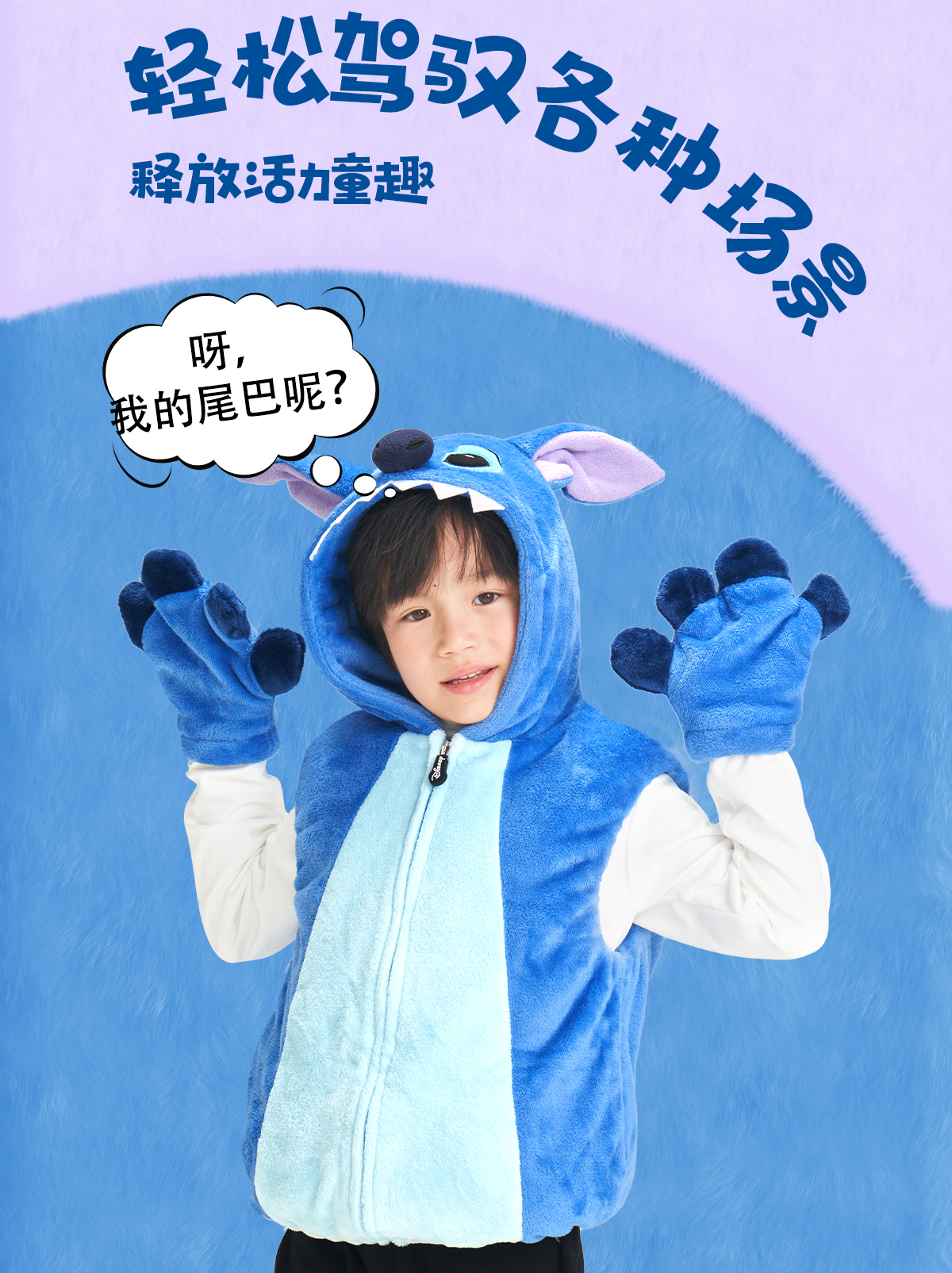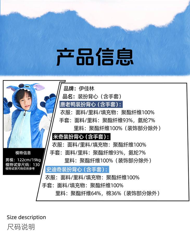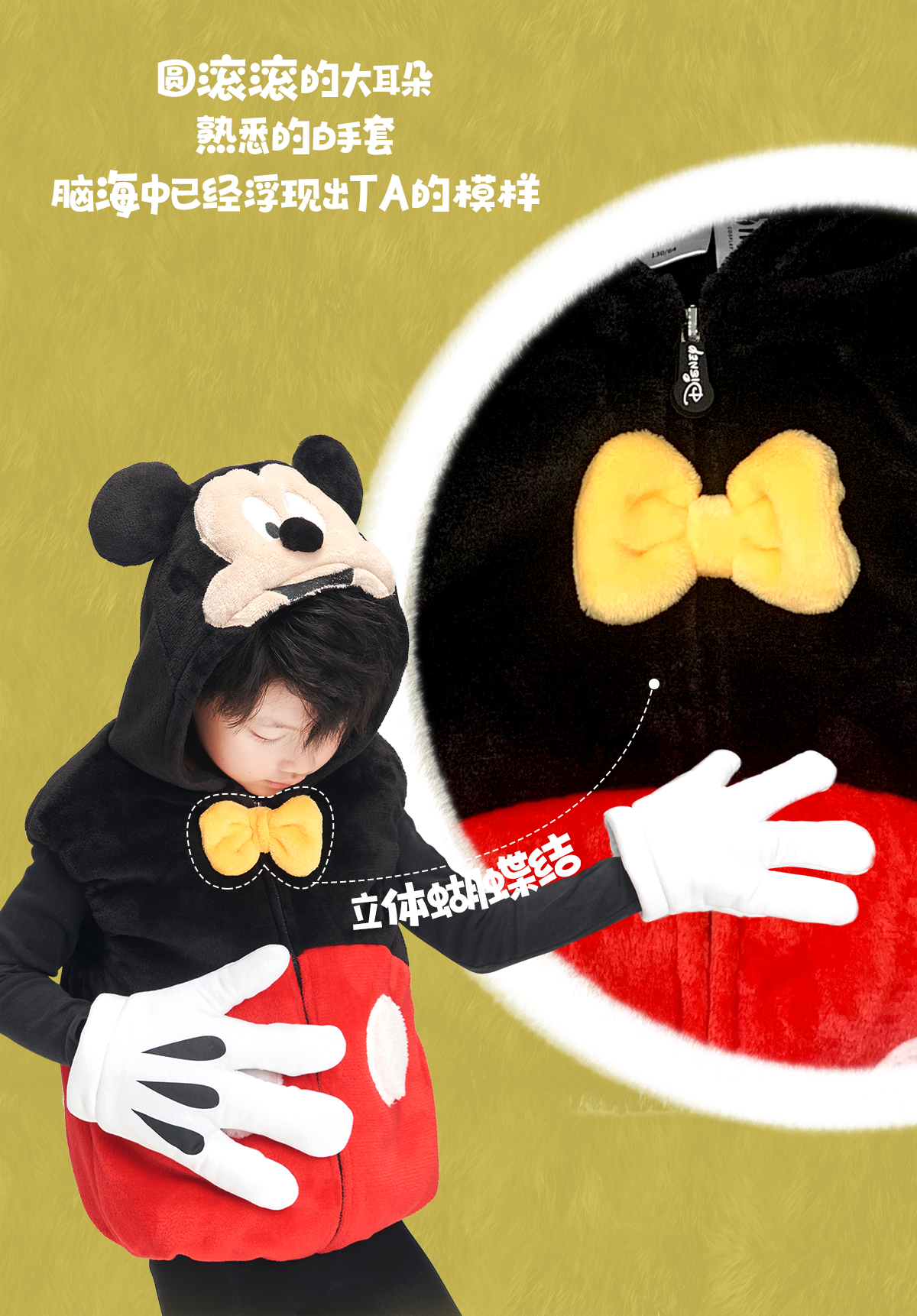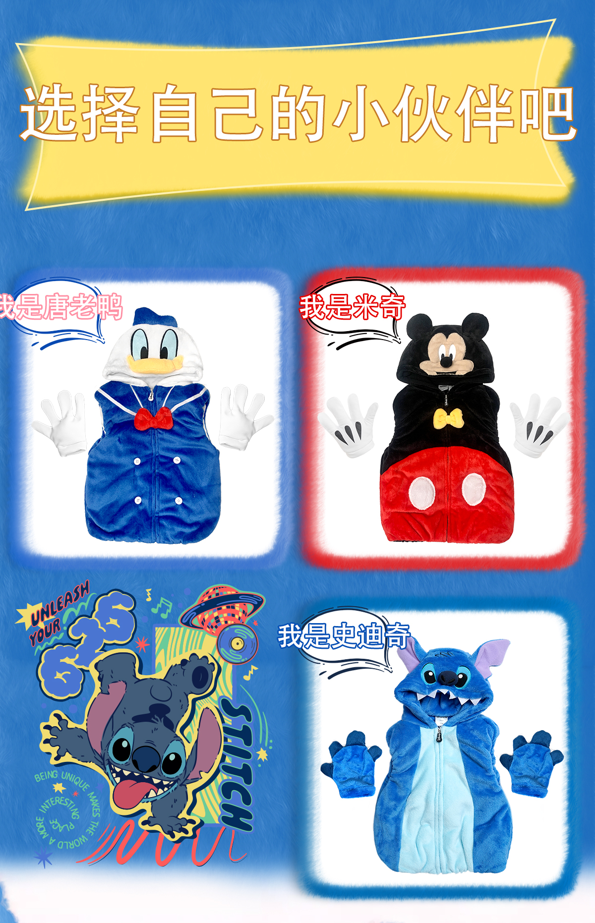 【官方正版】迪士尼米奇唐老鸭史迪奇可爱男童女宝马甲加绒保暖连帽手套5211 5212 5213 5257 5258 4905 4906