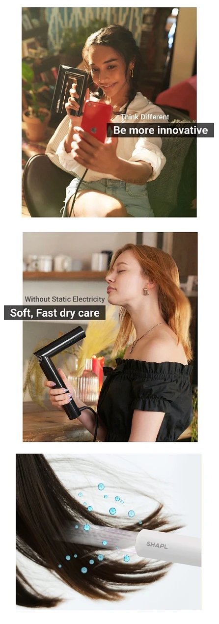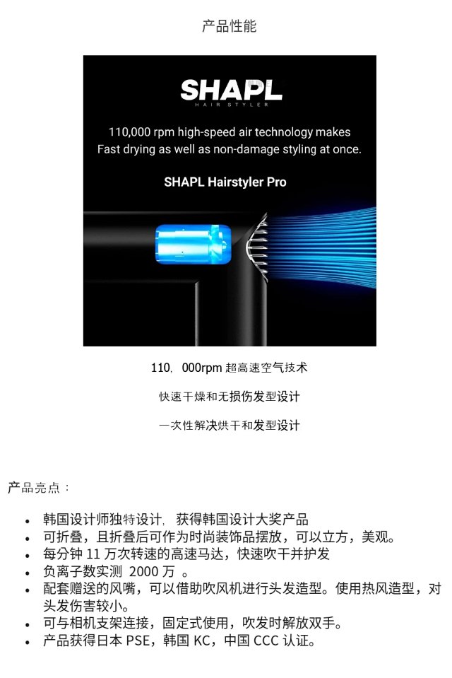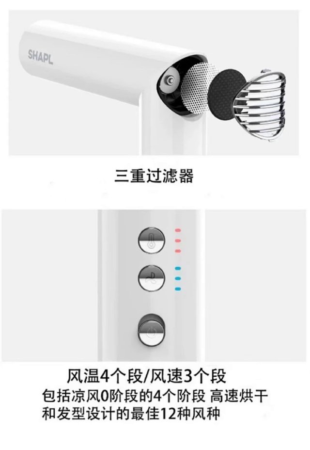 韩剧明星同款,家家户户用得上,实用又好用又高端,韩国SHAPL厦朴高速吹风机,某宝全球购售价四位数,一千多块钱,目前依然在售的还要699元,咱们团购一步到位就是便宜!直接268元包邮到家!包装全部礼盒装,上下两层自用或者送人绝对面子,全新未拆封,原厂塑封状态,110000转超高速无刷电机,高压马达喷射技术,快速吹干不伤发,可折叠设计,时尚装饰品摆放效果拉满,颜值很高,轴承柔性消音结构,比同类产品更静。9000万级负离子,中和静电,减少毛躁,智能记忆功能,更懂你,3档风力+4档温度调节,媲美戴森使用效果,用过一次后,再也不想用其他吹风机。