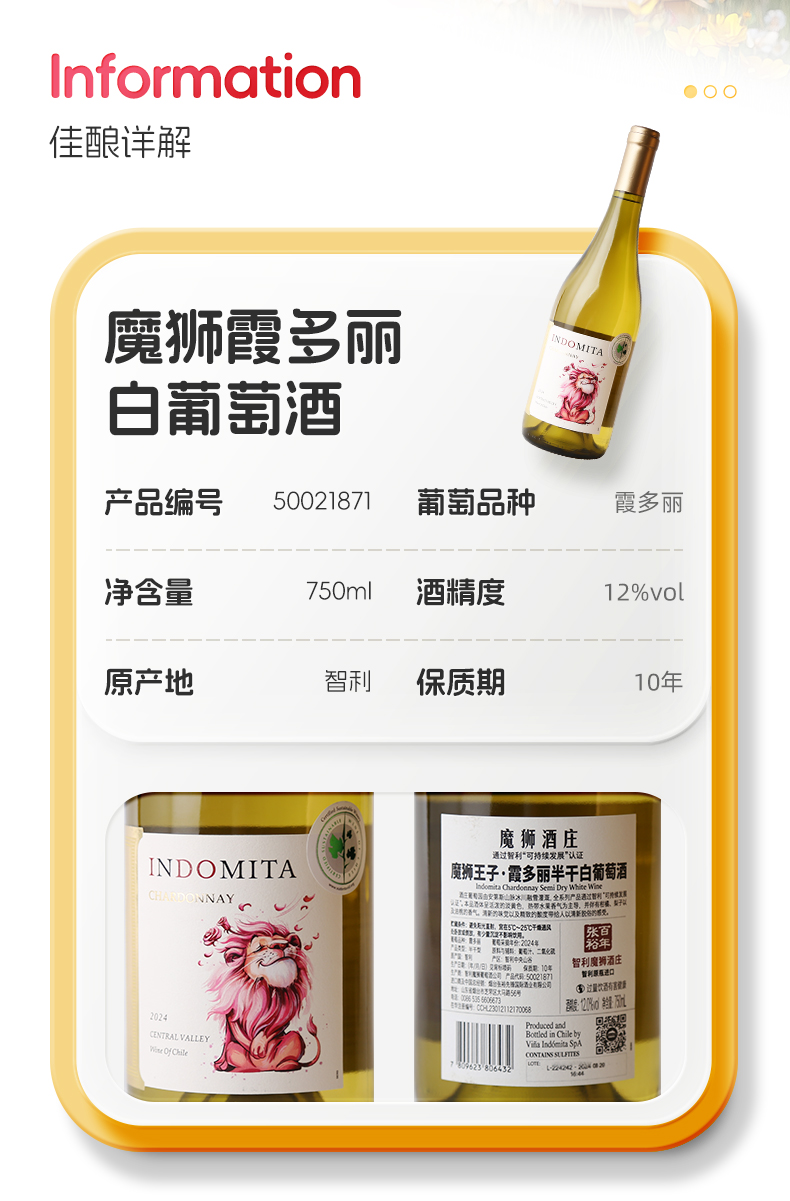 魔狮酒庄魔狮王子·佳美娜干红霞多丽半干白双支组合