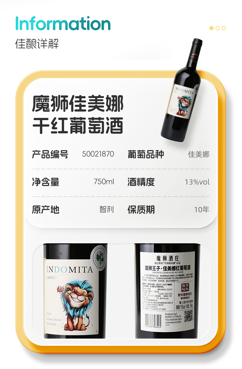 智利魔狮酒庄魔狮王子·佳美娜干红/霞多丽半干白750ml