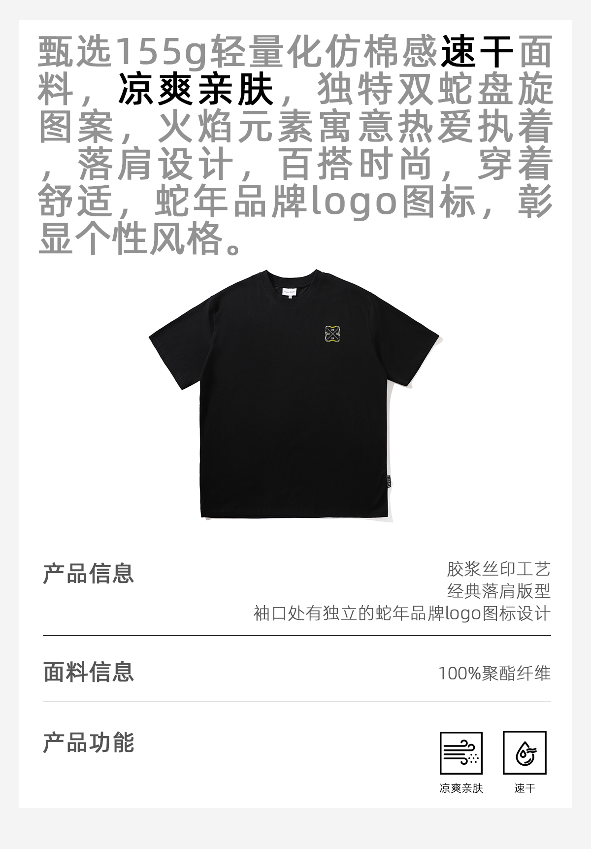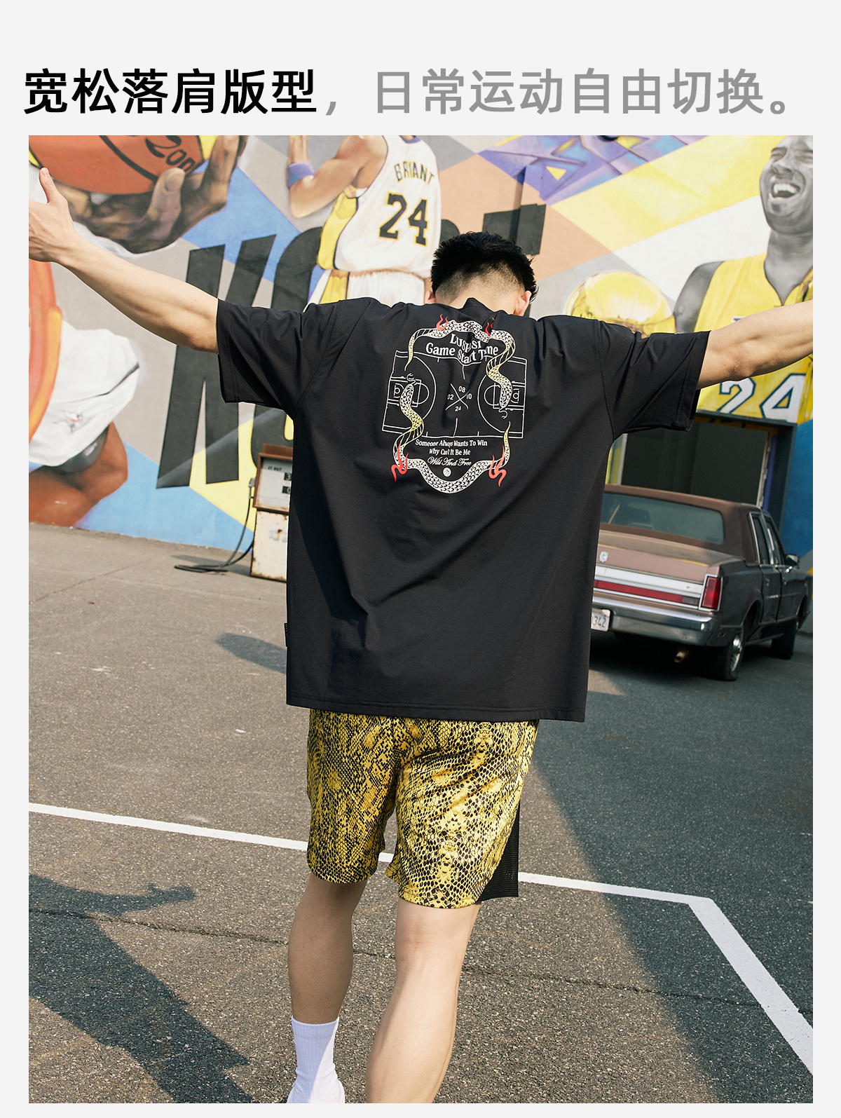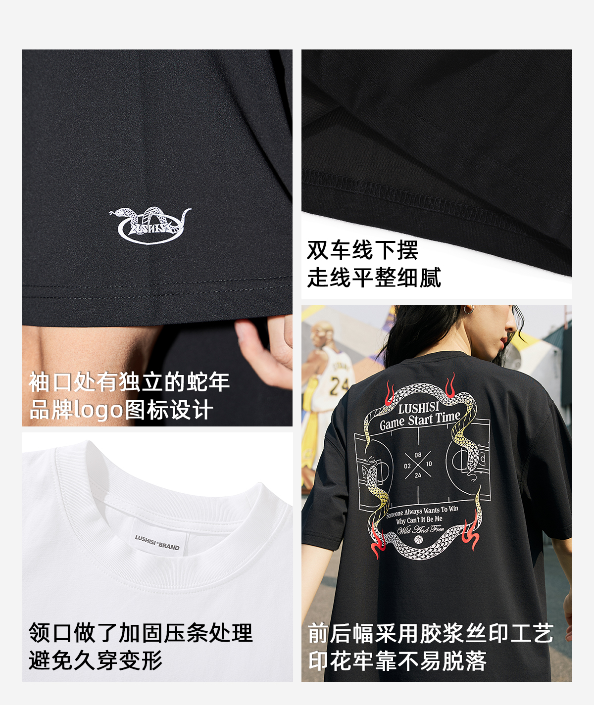 LUSHISI【蛇年限定】盘山主题美式复古t恤棉感速干透气运动短袖男