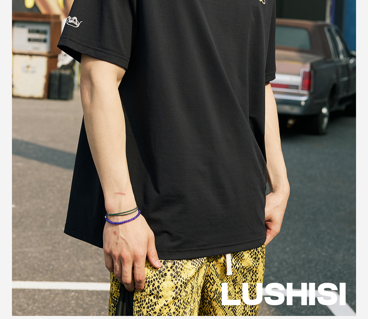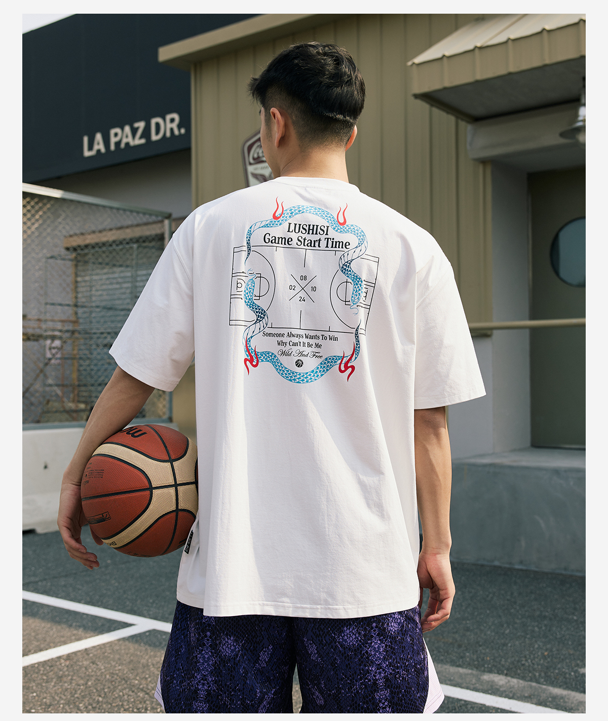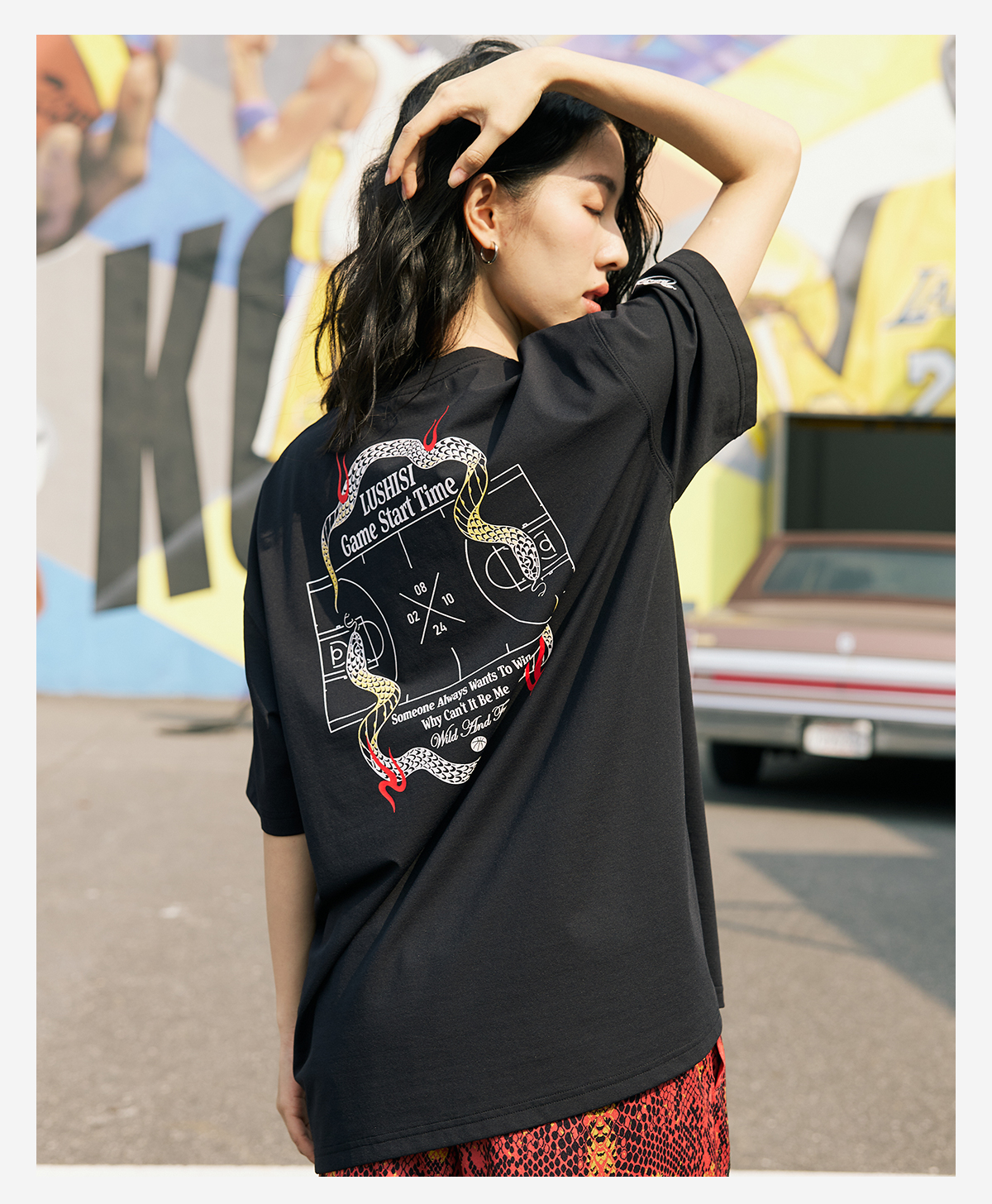 LUSHISI【蛇年限定】盘山主题美式复古t恤棉感速干透气运动短袖男