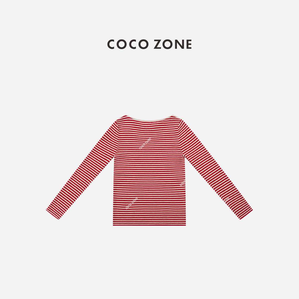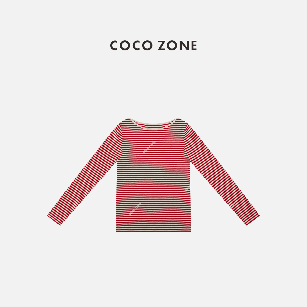 COCO ZONE 条纹撞色长袖针织衫套头圆领上衣CC2C2322