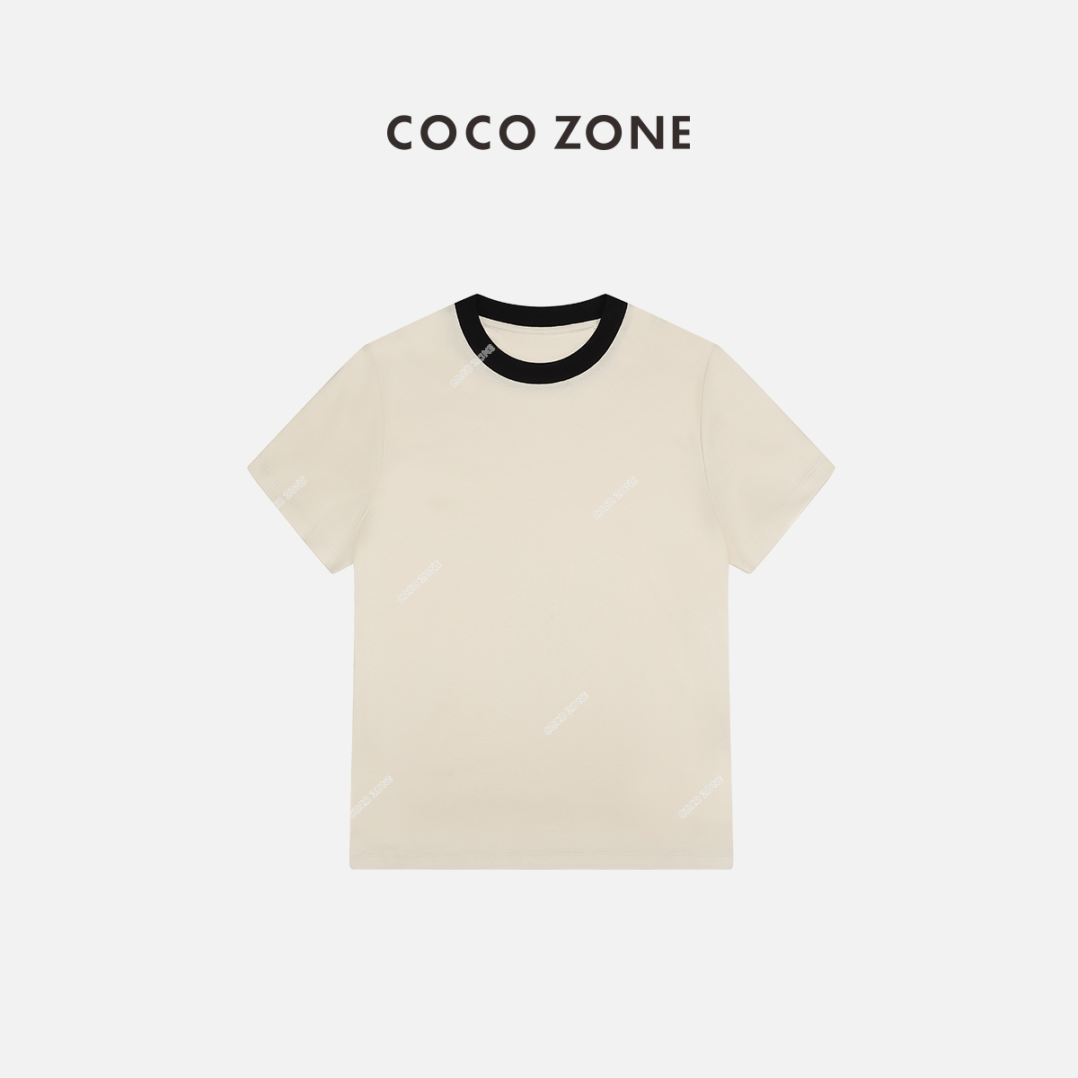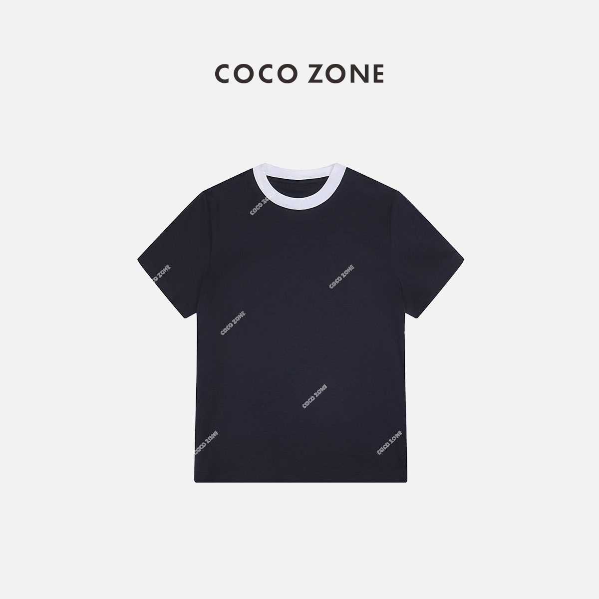 COCO ZONE高级感撞色螺纹圆领撞色短袖T恤上衣24C10192