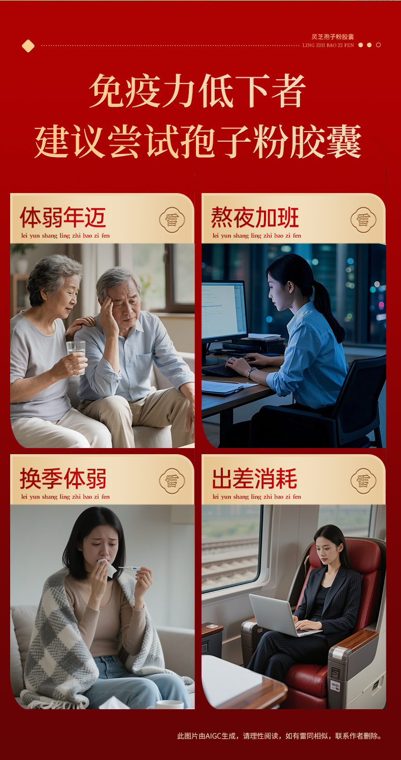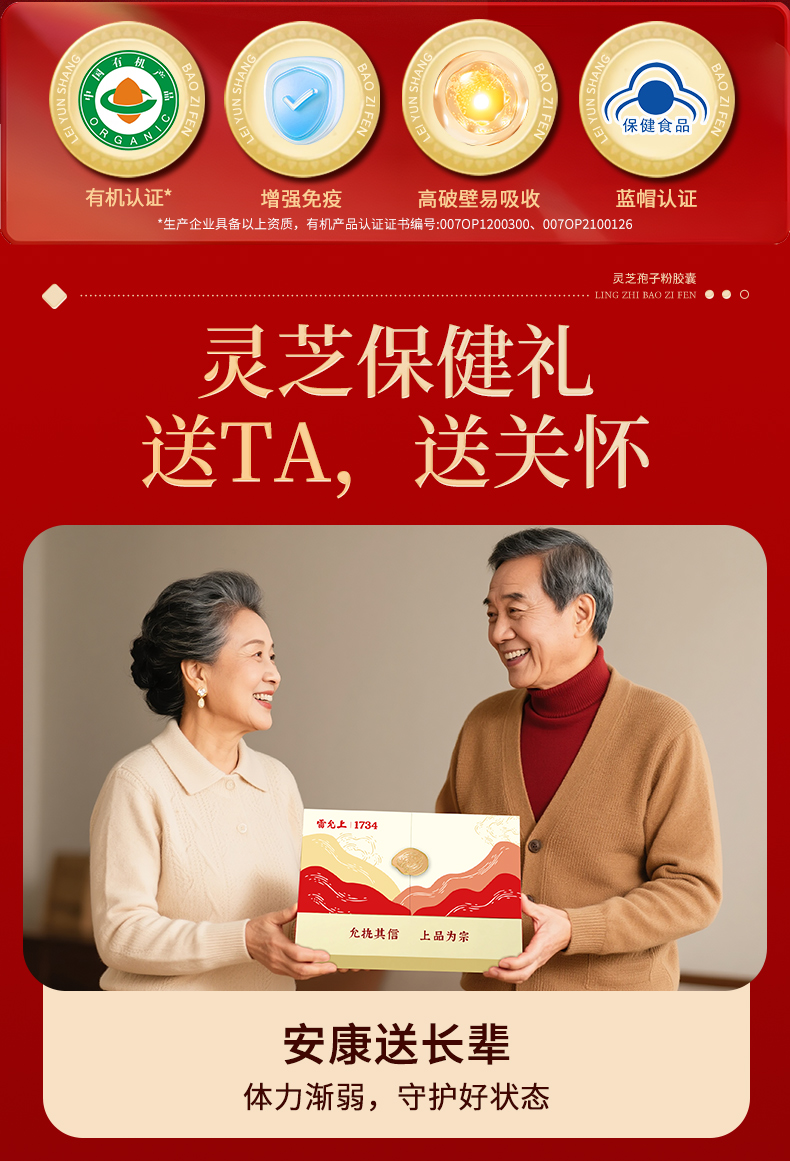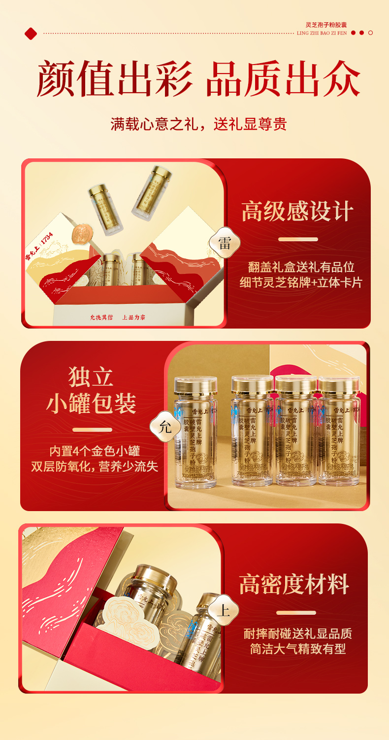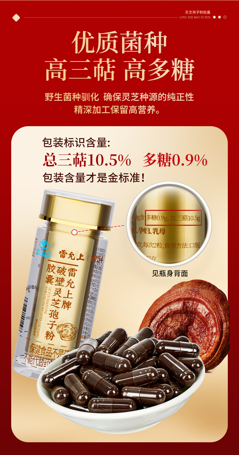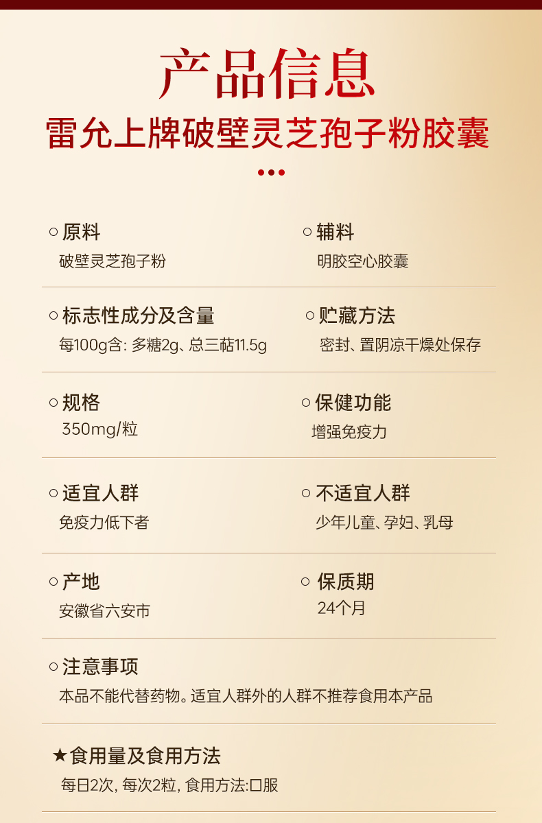 雷允上破壁灵芝孢子粉胶囊42g(350mg*30粒/瓶*4瓶)/盒