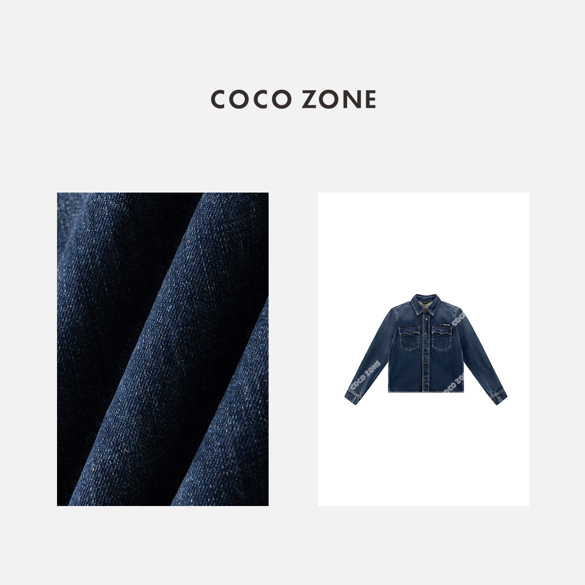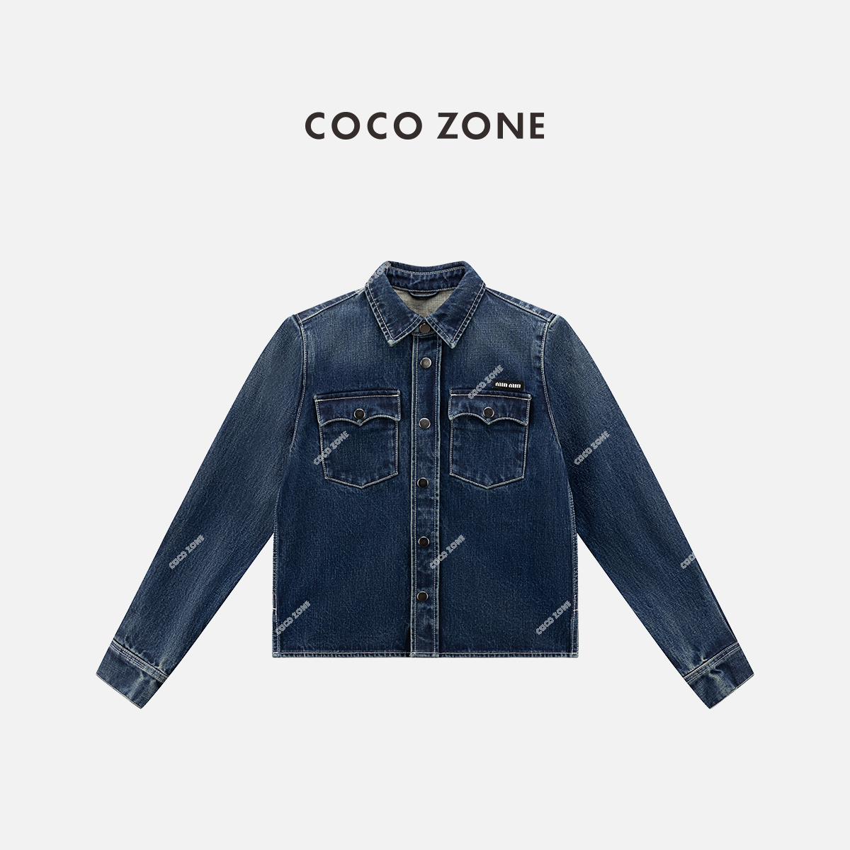 COCO ZONE 复古翻领单排扣牛仔衬衫百搭长袖上衣CC1B1509