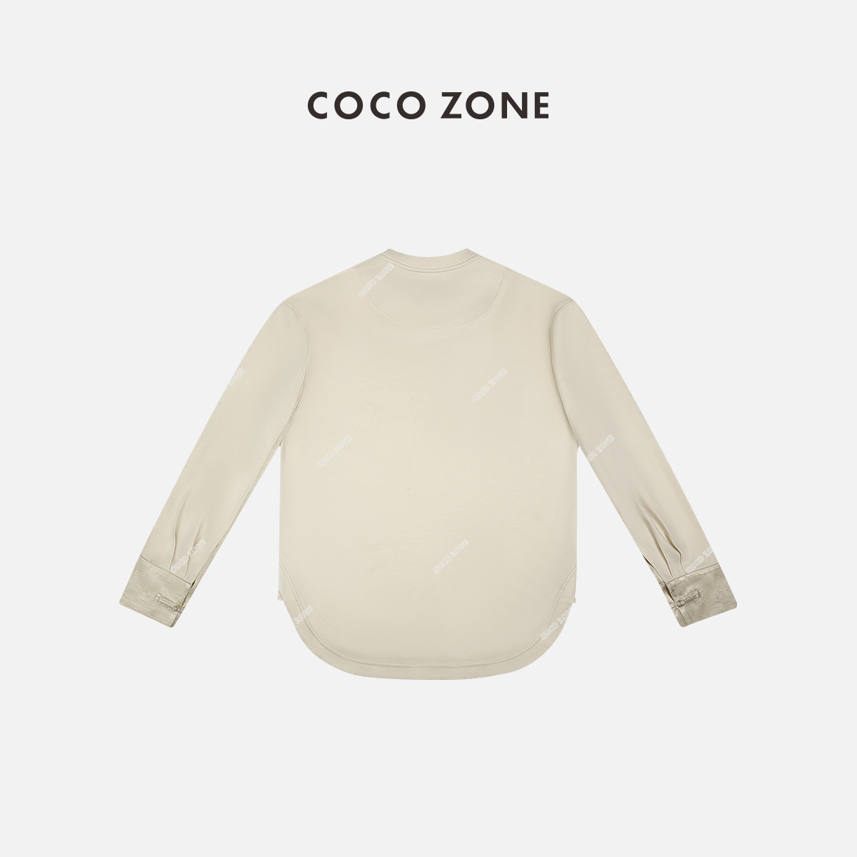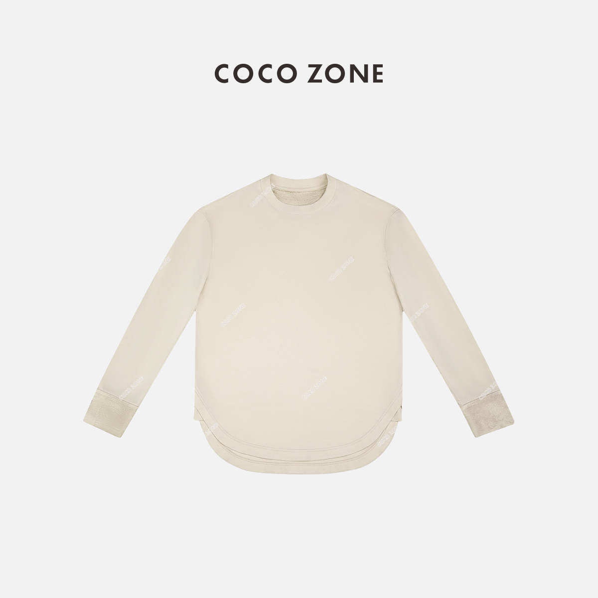 COCO ZONE 新款纯色宽松套头T恤复古圆领长袖上衣24C10333
