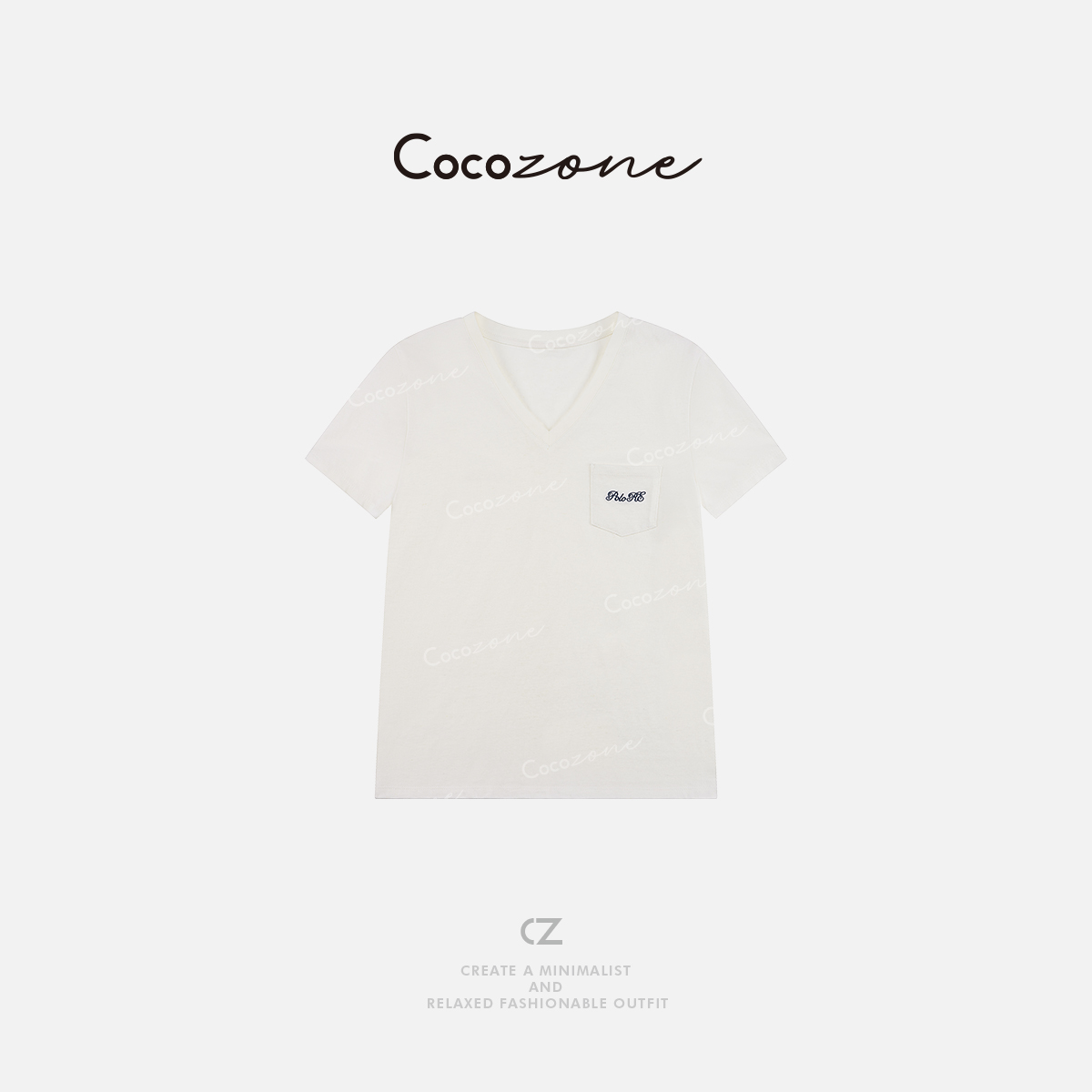 COCO ZONE 刘一一 【棉大麻混纺】圆领口袋字母短袖T恤CD2A0751