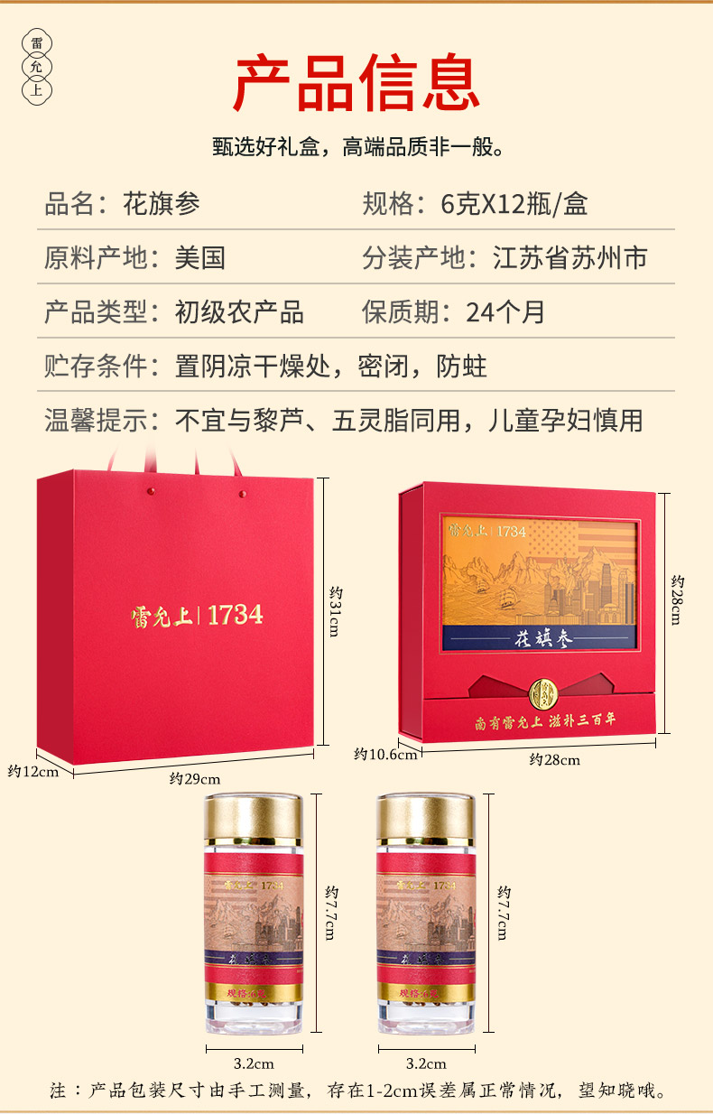 雷允上美国花旗片72g(6g*12瓶)/盒(1.4-1.6cm)