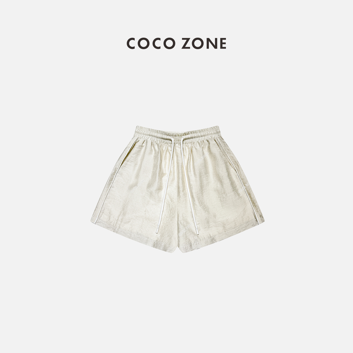 COCO ZONE 2024时尚纯色松紧腰简约百搭通勤风短裤CC2A0365