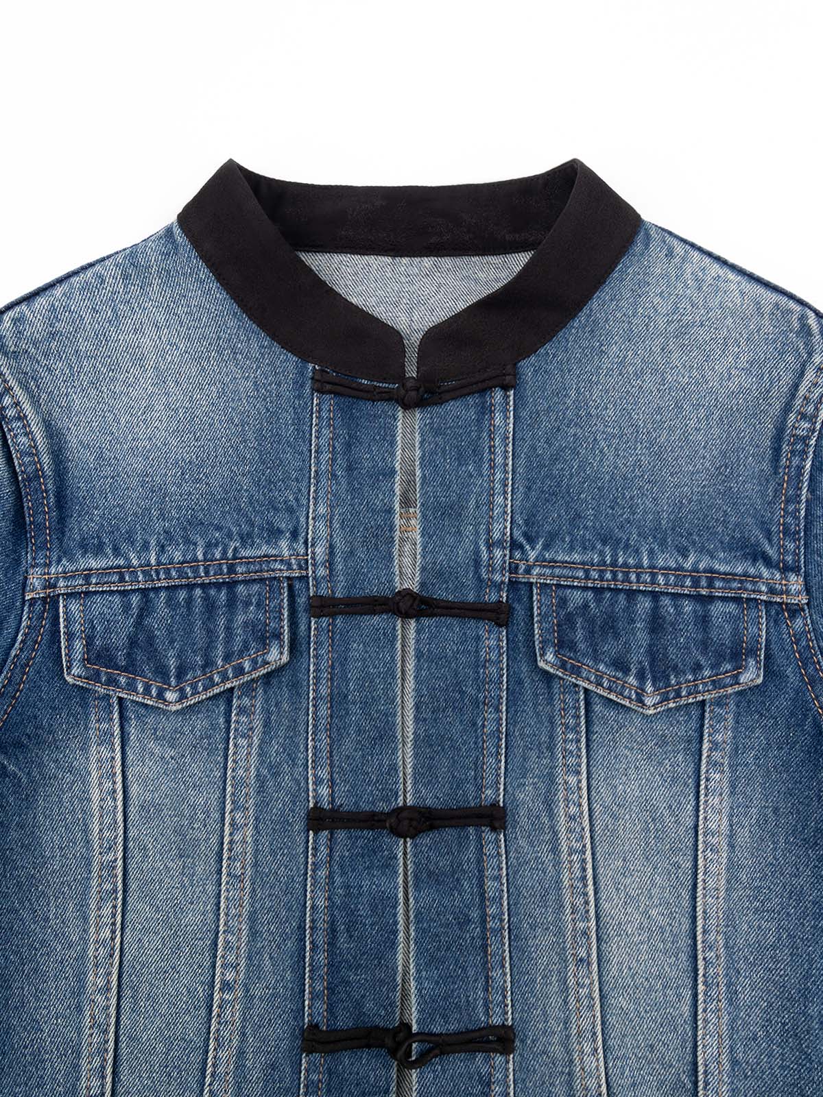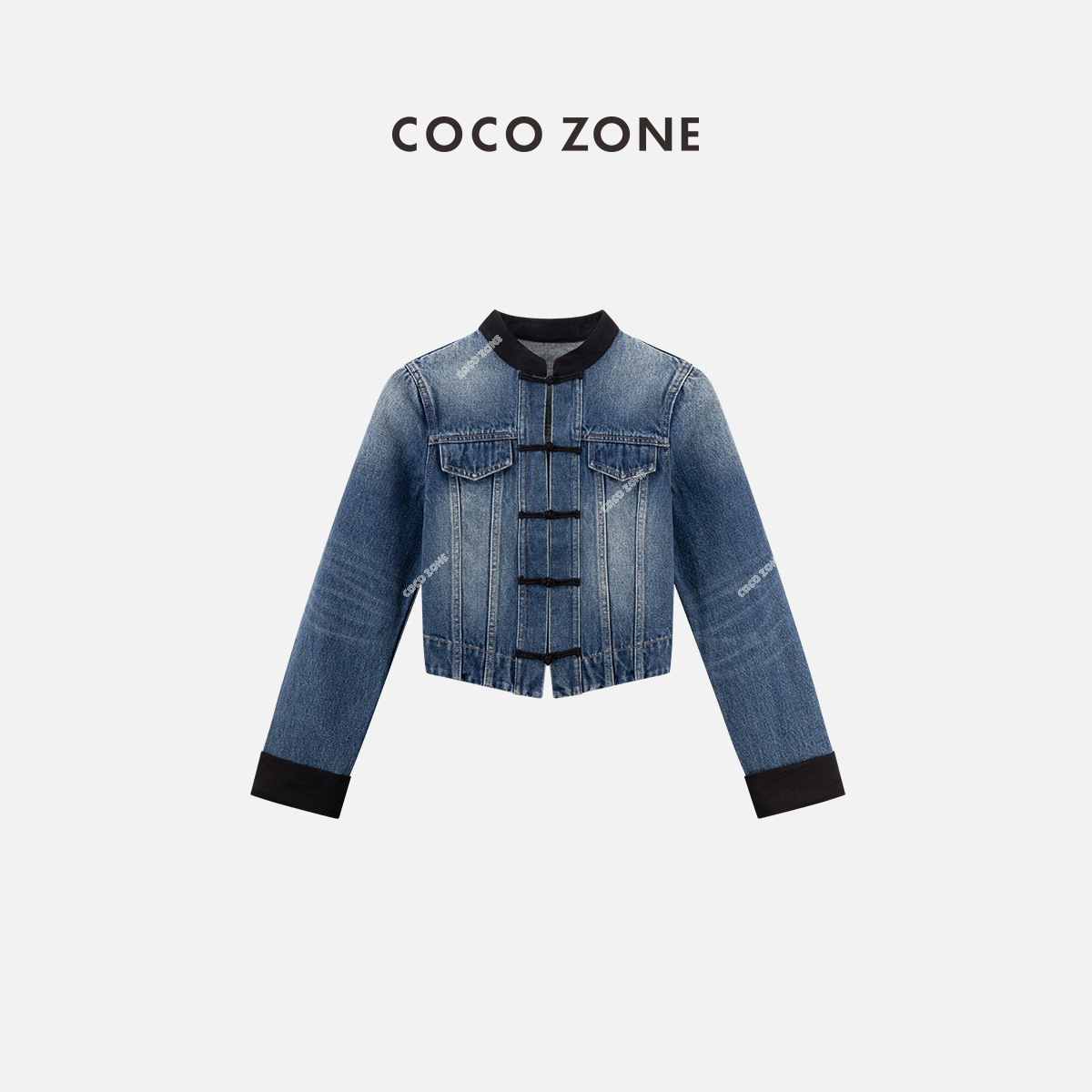 COCO ZONE 2024新中式盘扣牛仔外套早春复古国风上衣CC2A0349