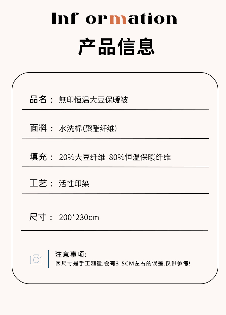 無印格调恒温大豆保暖被200*230cm