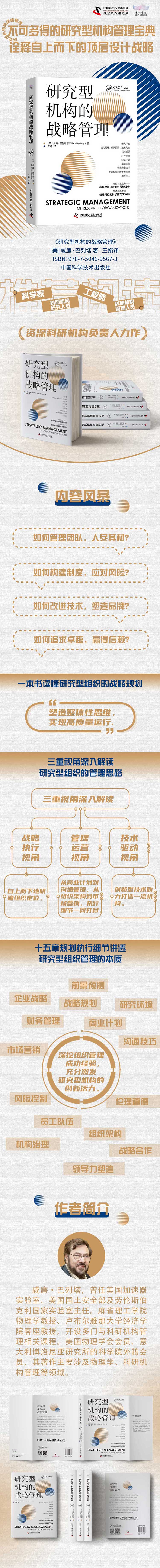 完整呈现组织管理战略体系,为研究型机构的发展指明方向。 解析研究型机构真实运作过程中的实践案例,讲透组织管理新内涵。 深挖组织管理成功经验,探寻研究型机构战略管理的核心原则。 明确组织定位,规划执行细节,充分激发研究型机构的创新活力。