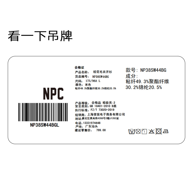 NPC潮牌绞花毛衣开衫重工混纺立体半高领上衣提花秋季NP38SW44