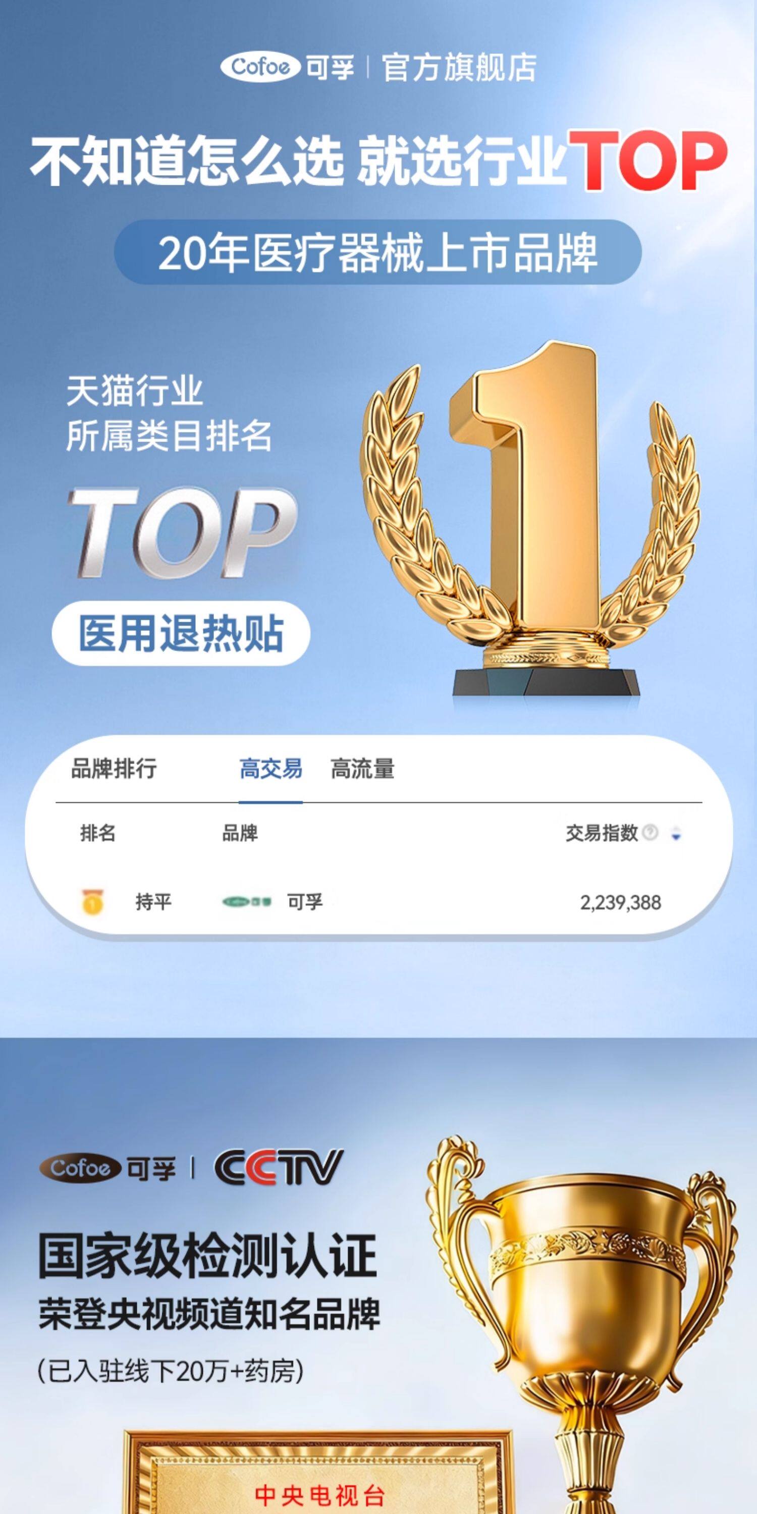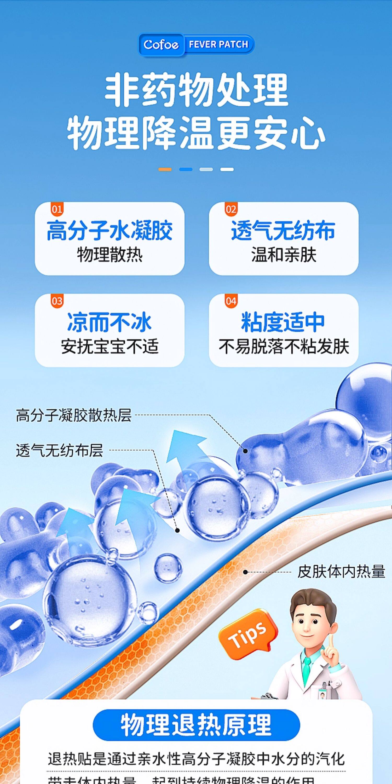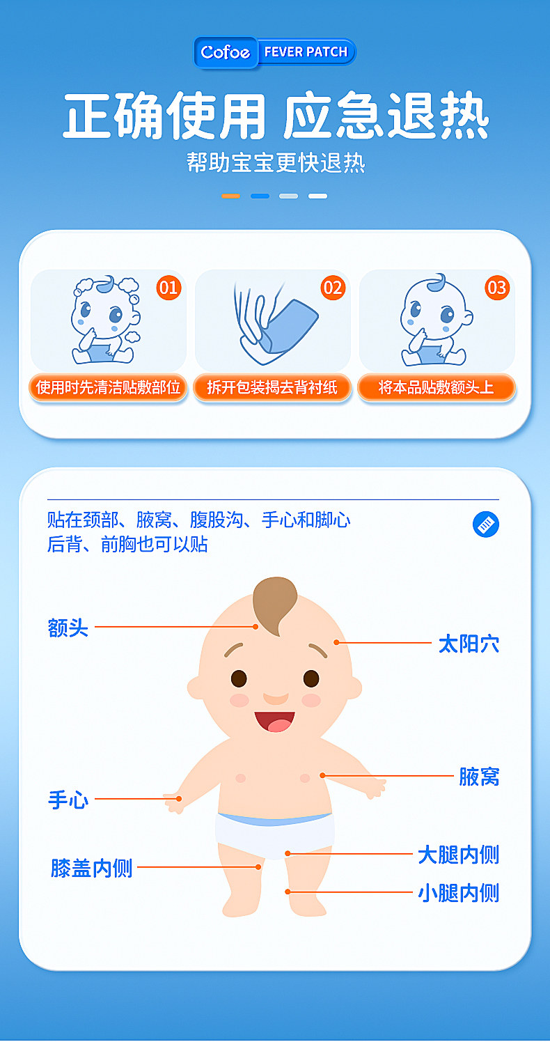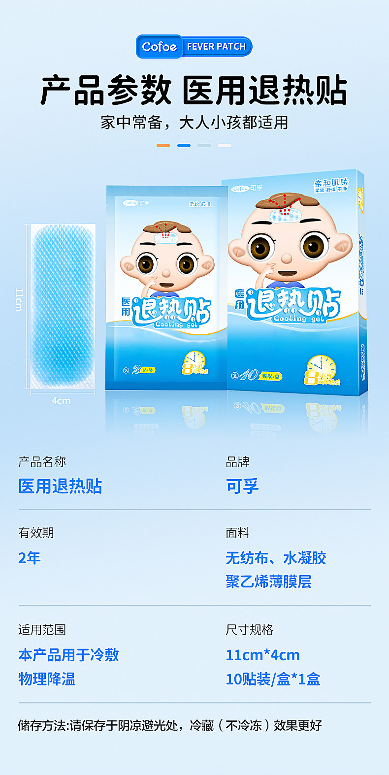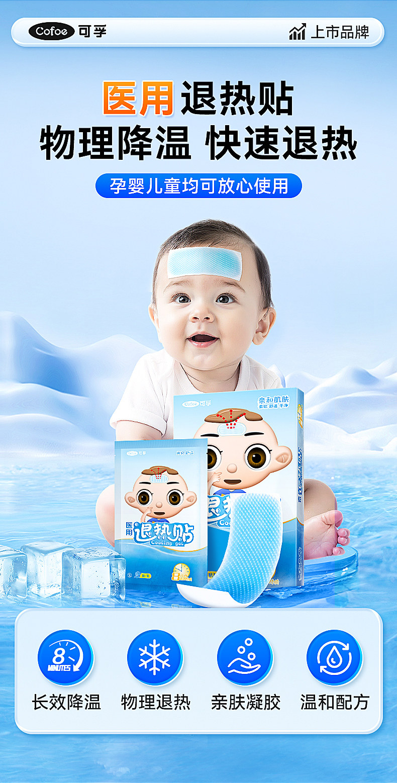 可孚医用退热贴婴幼儿儿童退烧贴医用小儿宝宝成人发烧物理降温帖