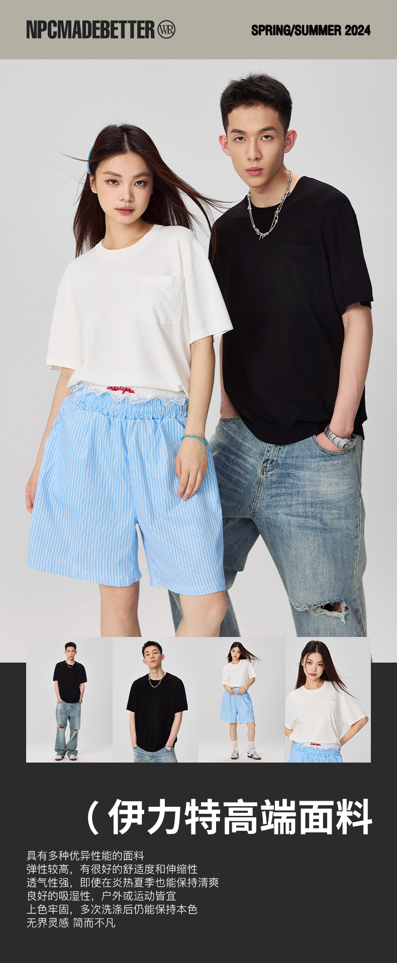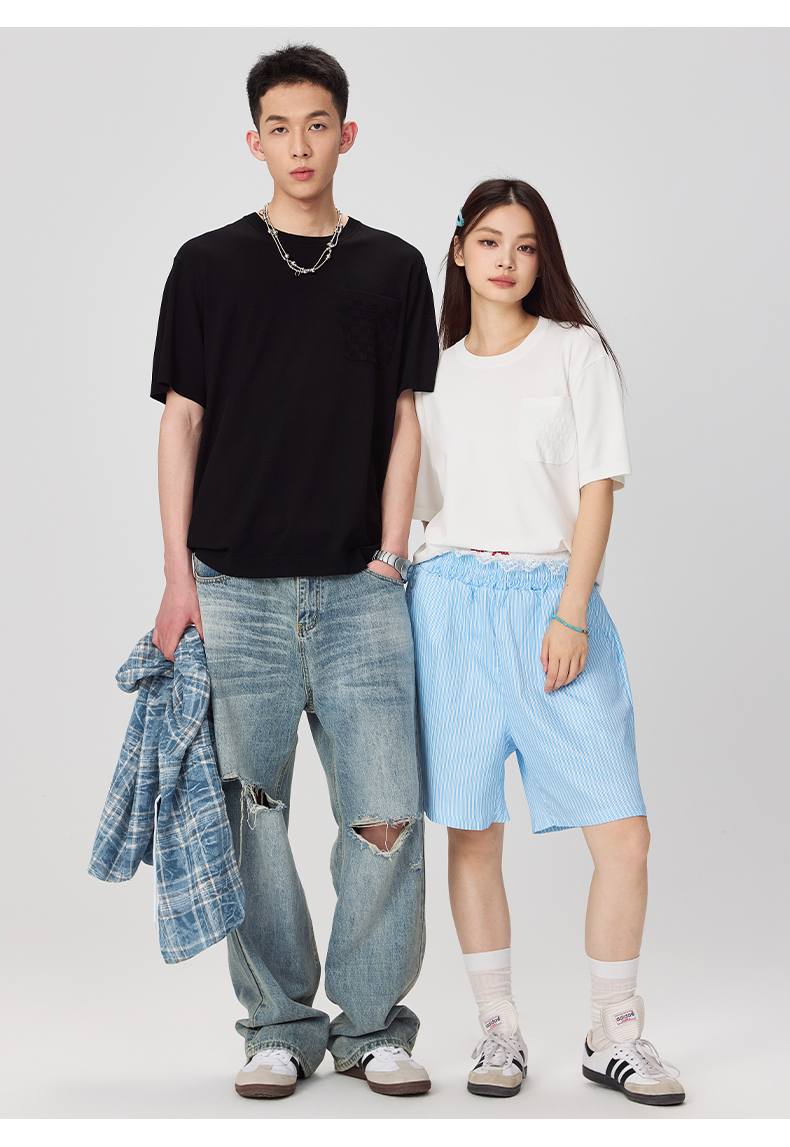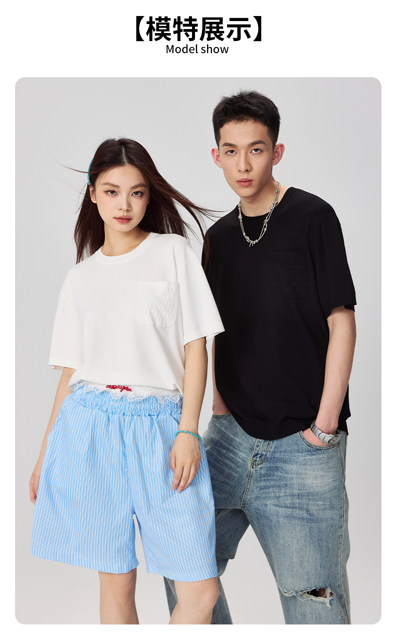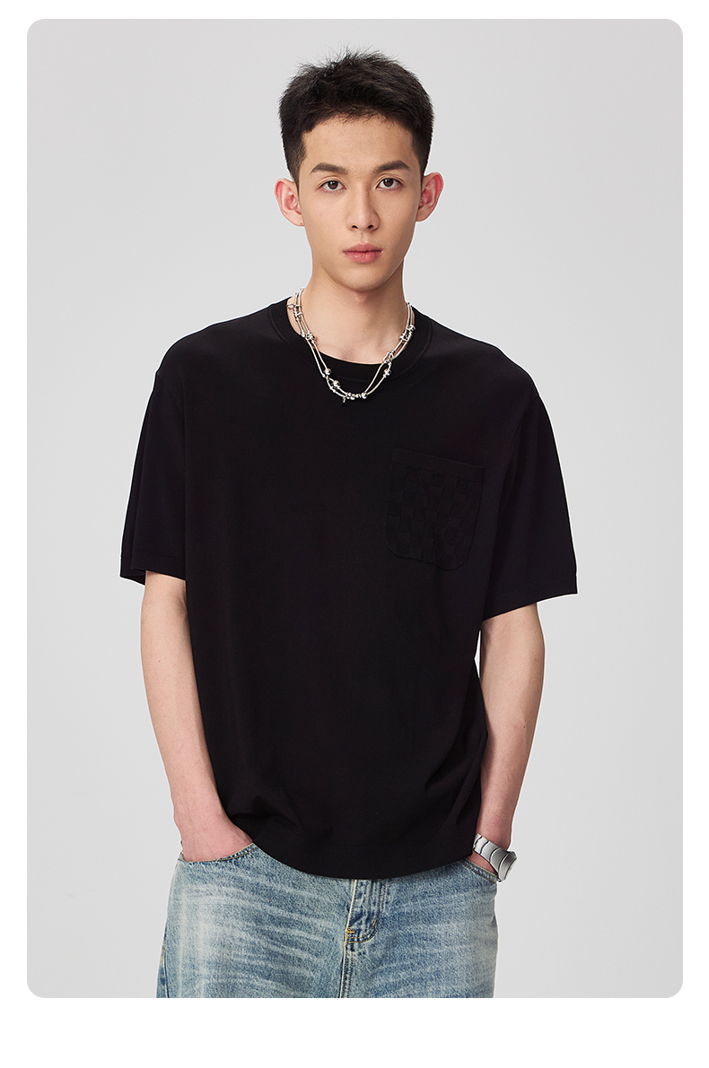 NPC潮牌老钱风【伊力特】口袋肌理压印棋盘格短袖T男潮流NP44TE24