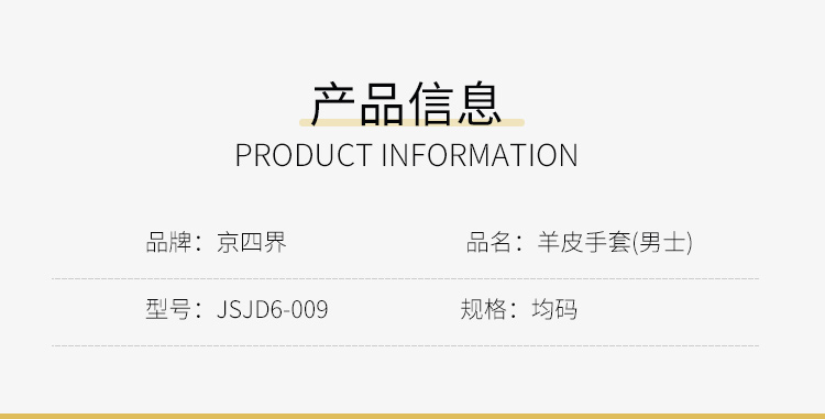 京四界 · 男士羊皮 手套 JSJD6-009