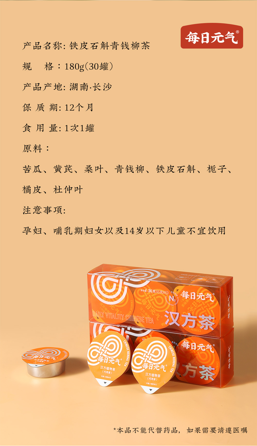 【限时买3盒加赠2盒】每日元气铁皮石斛青钱柳茶8种优质原材(糖友茶)