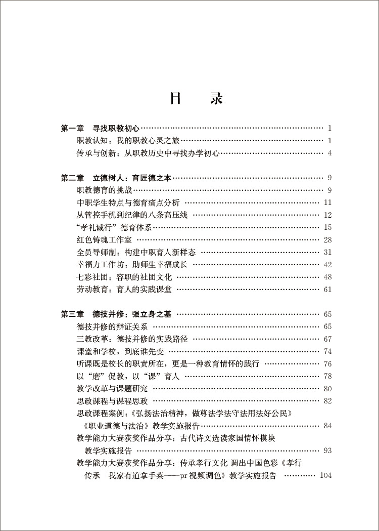 和 启 发 。第 一 章 , 寻 找 职 教 初 心 。 第 二 章 , 立 德 树 人 : 育 匠 德 之 本 。第 三 章 , 德 技 并