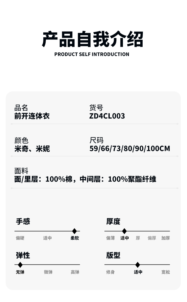 秋冬新款夹棉侧开连体衣柔软舒适哈衣打底衣爬爬服ZD4CL003
