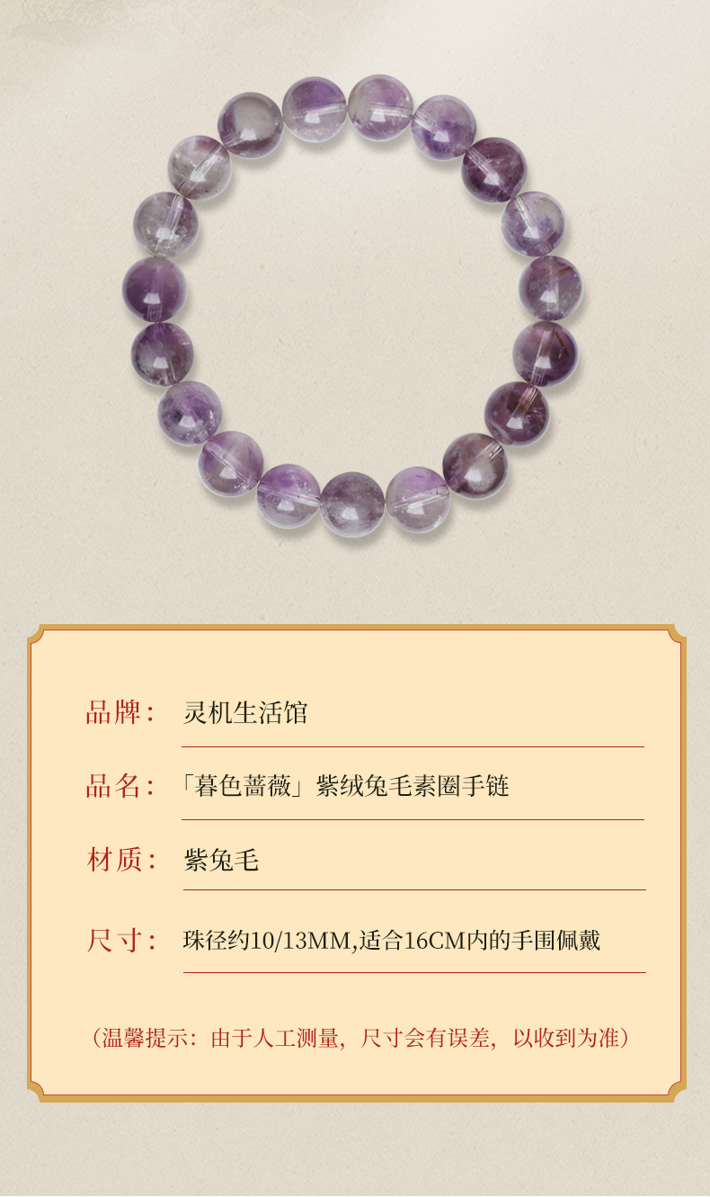 「情绪盾牌」灵机生活馆紫绒兔毛手链优雅高贵级人百搭小众新款送女友同水晶