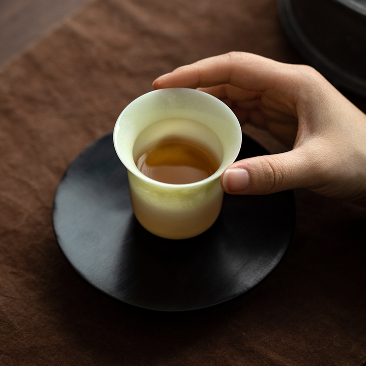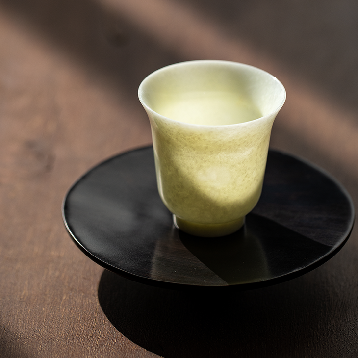 *由于这段时间订单比较火爆,与蛇纹石玉杯搭配的黑檀木杯托已经售罄,将更换为大叶楠木杯托,价值感依旧超高。