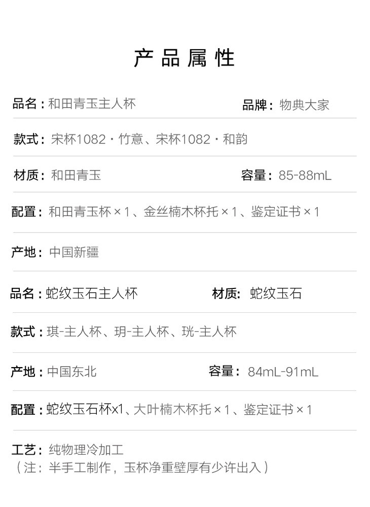就是眼前这5款——「物典大家」出品的和田玉杯与蛇纹石玉杯,价值千元,而今天只需338元就可以抽中其中任意一款!