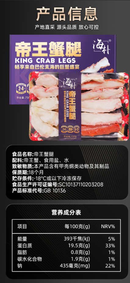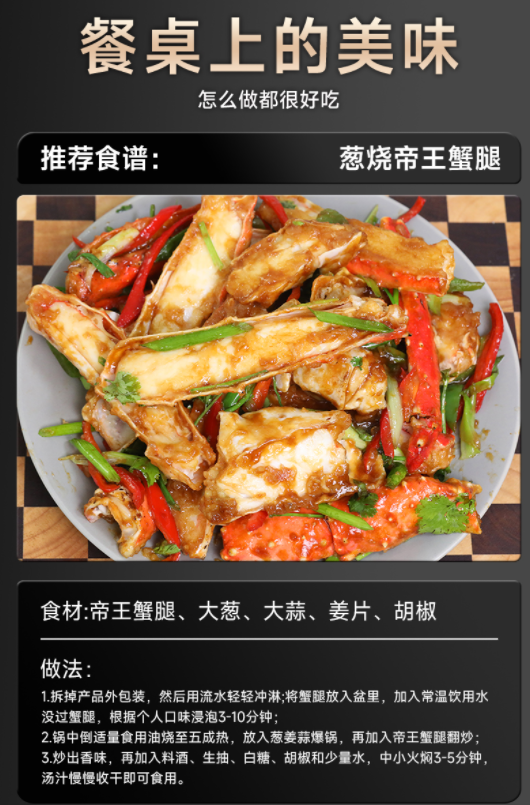 海朴帝王蟹腿750g活蟹切割鲜香美味解冻即食