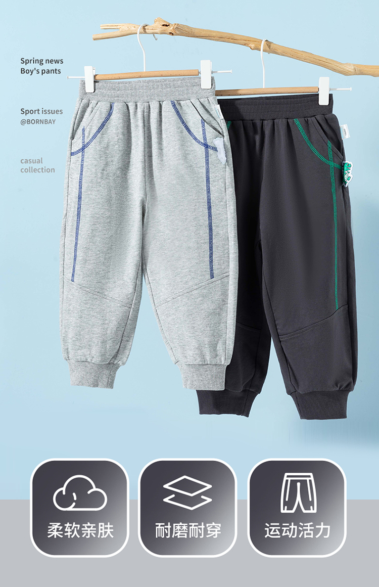 贝贝怡男童春秋纯棉休闲长裤裤子ZB1EK021