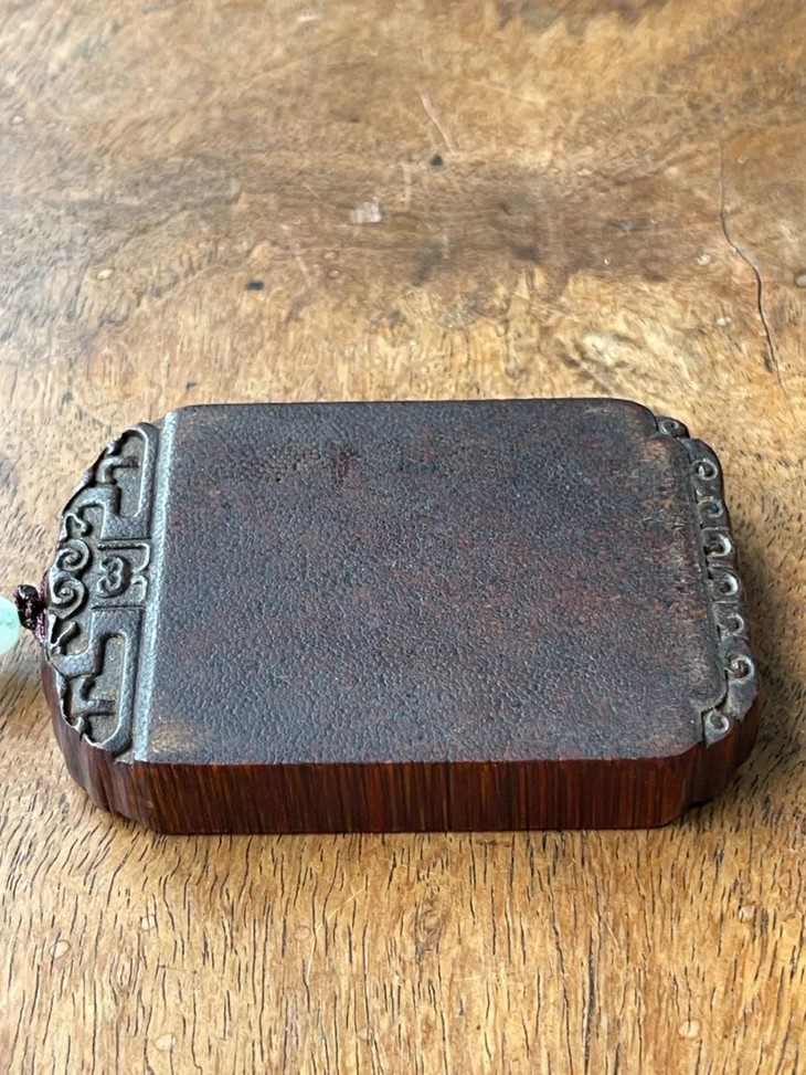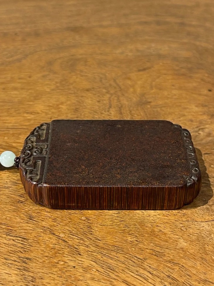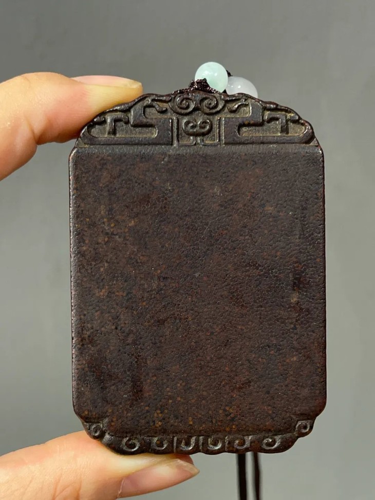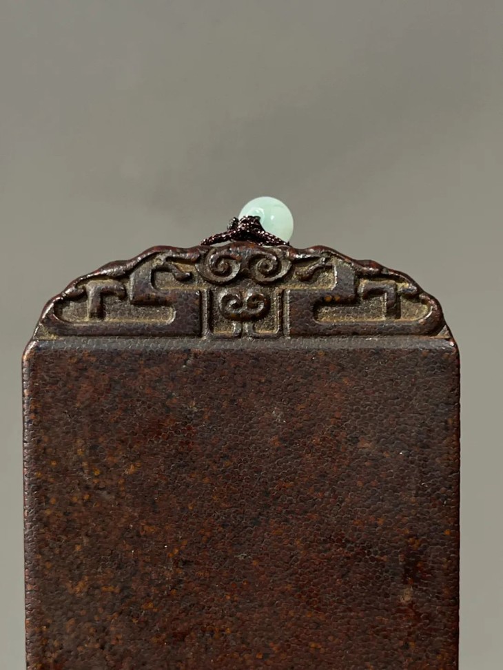 此天然兽角雕螭龙框无事牌材质坚硬、纹理凊晰、雕琢纹饰圆融贵气,触感细腻,老包浆皮壳温润细腻,上手盘玩令人爱不释手。如图所示,除表面细微磨损痕外,保保存完好无损。