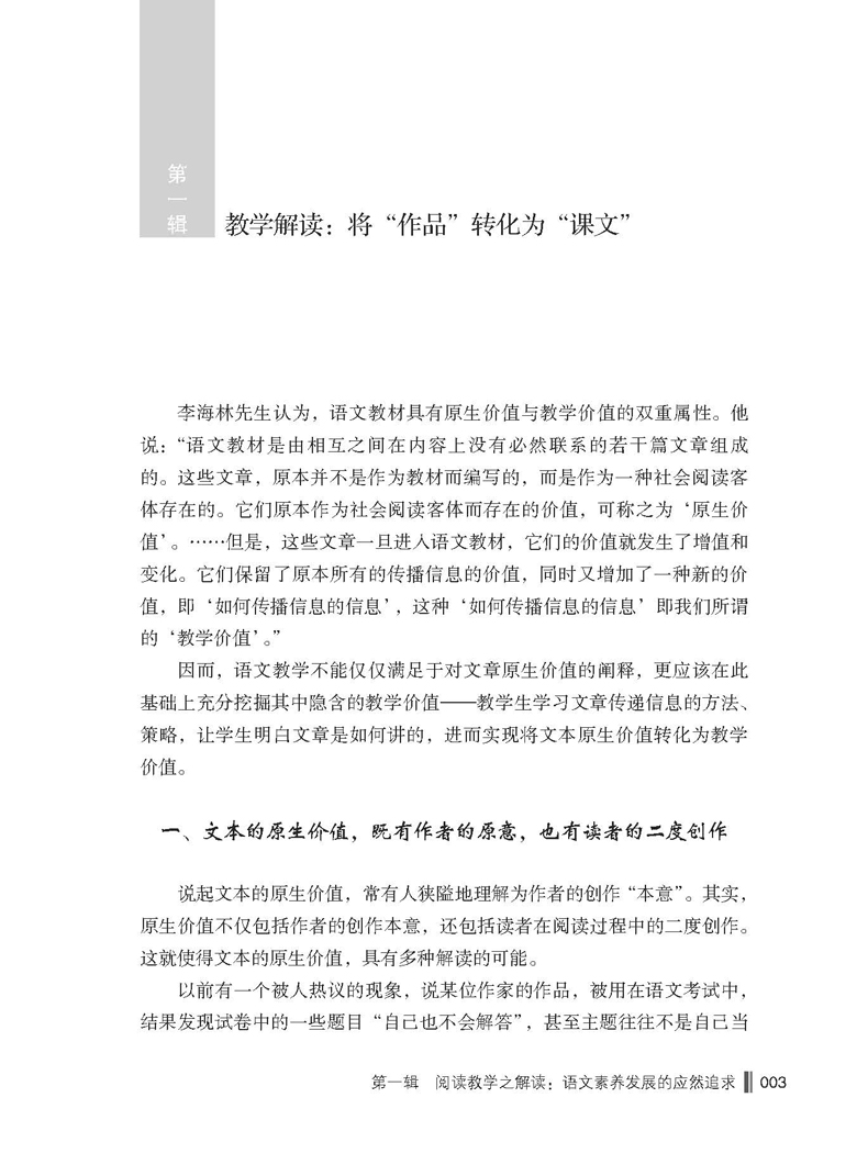 走向语文素养的阅读教学 大夏书系 阅读决定发展高度 教给学生带得走的能力 教学解读 教学场景 教学思辨