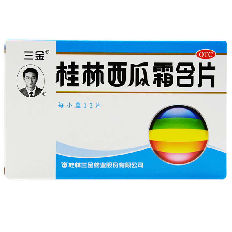 三金桂林西瓜霜含片0.62g*12片/盒口舌生疮口腔溃疡咽喉肿痛咽炎