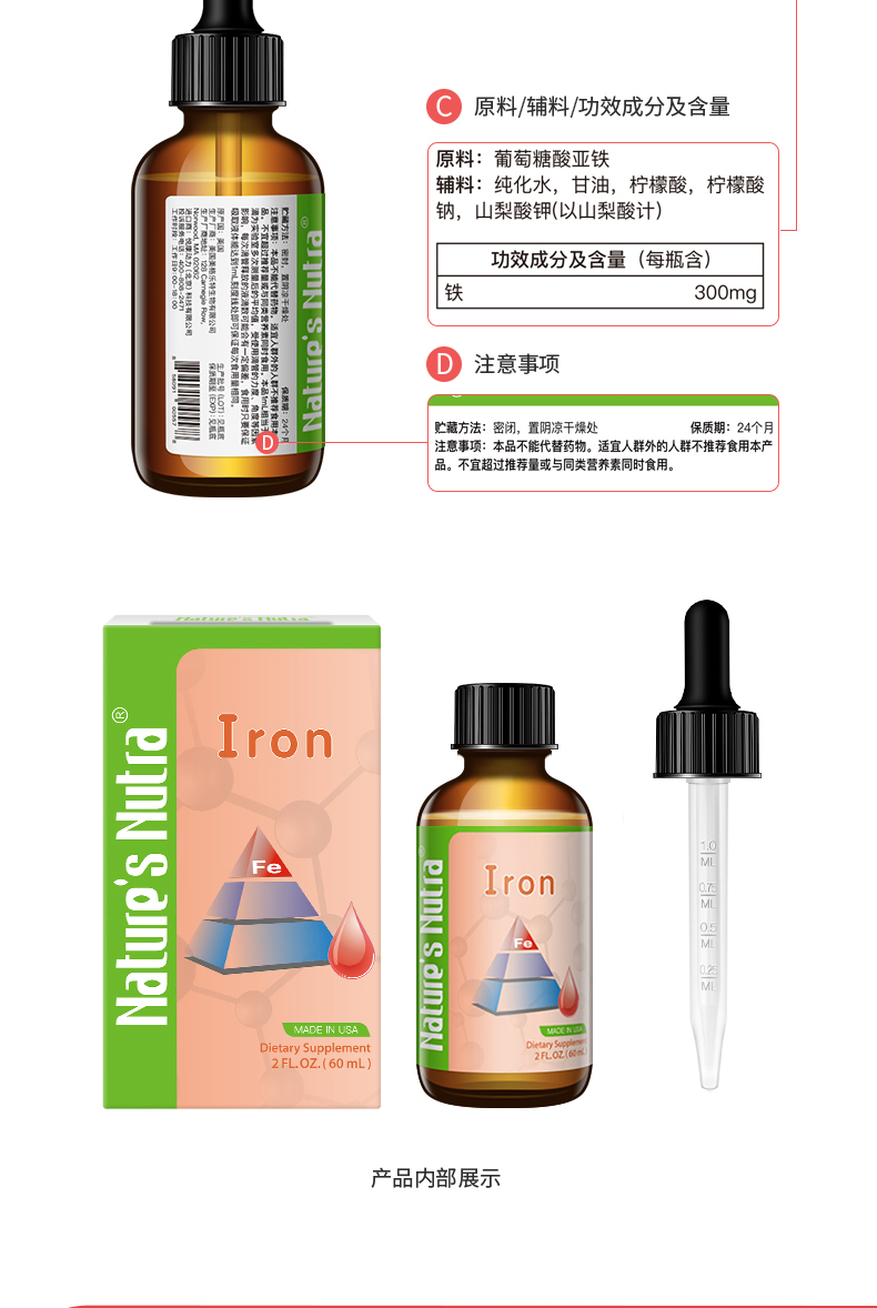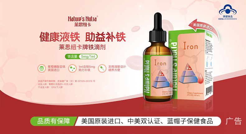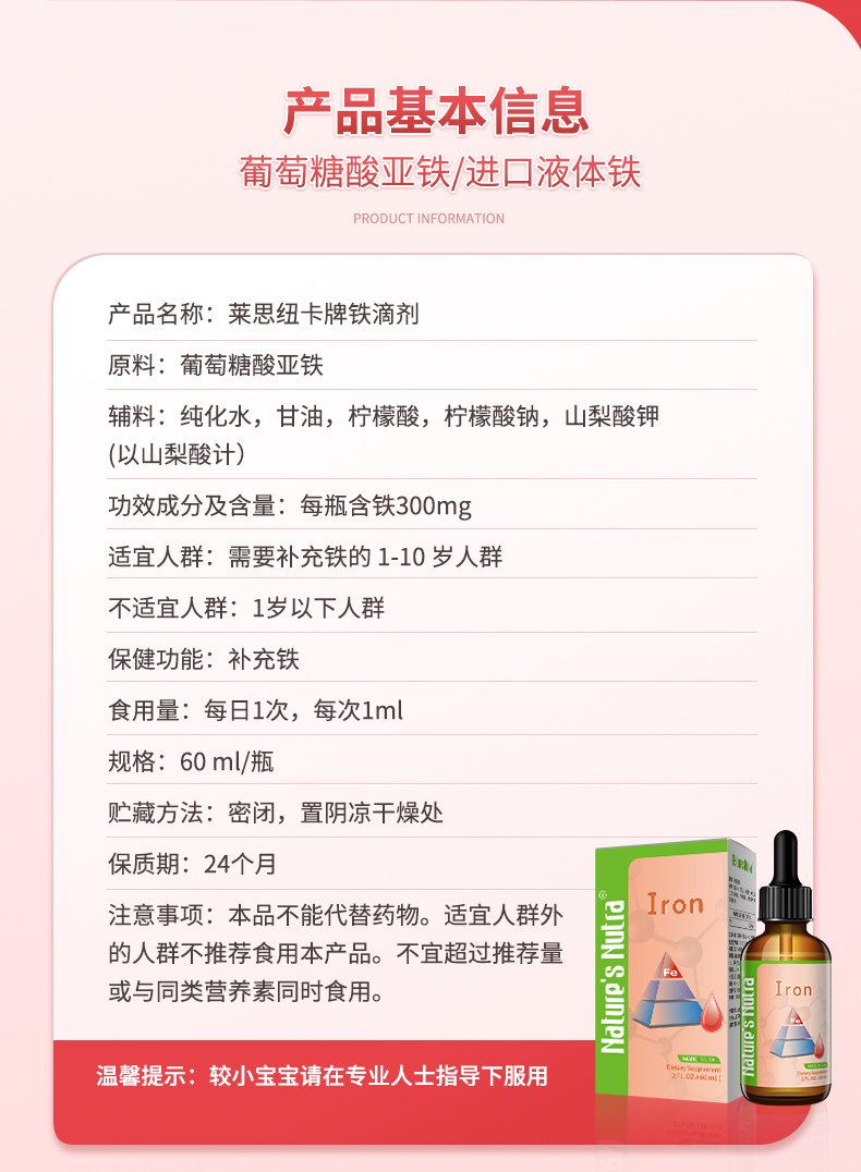 【一般贸易】美国进口莱思纽卡婴幼儿补铁滴剂60ml