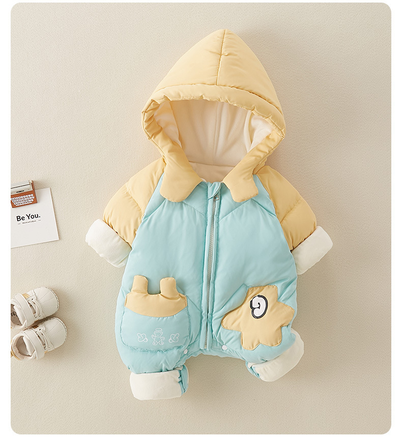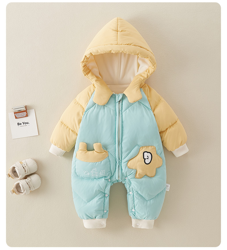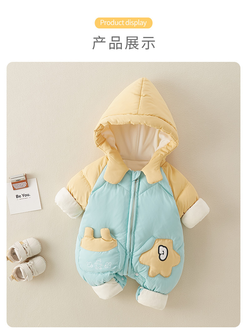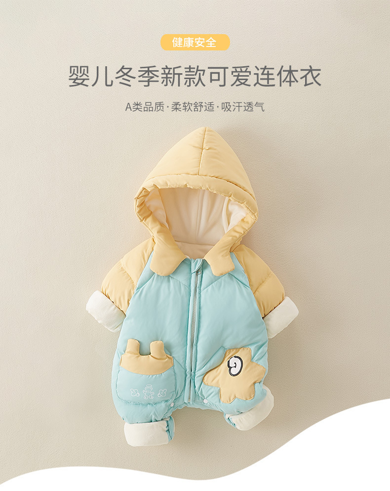 婴儿白鸭绒保暖连体衣服冬季新款可爱连帽加厚棉服男女宝宝羽绒服