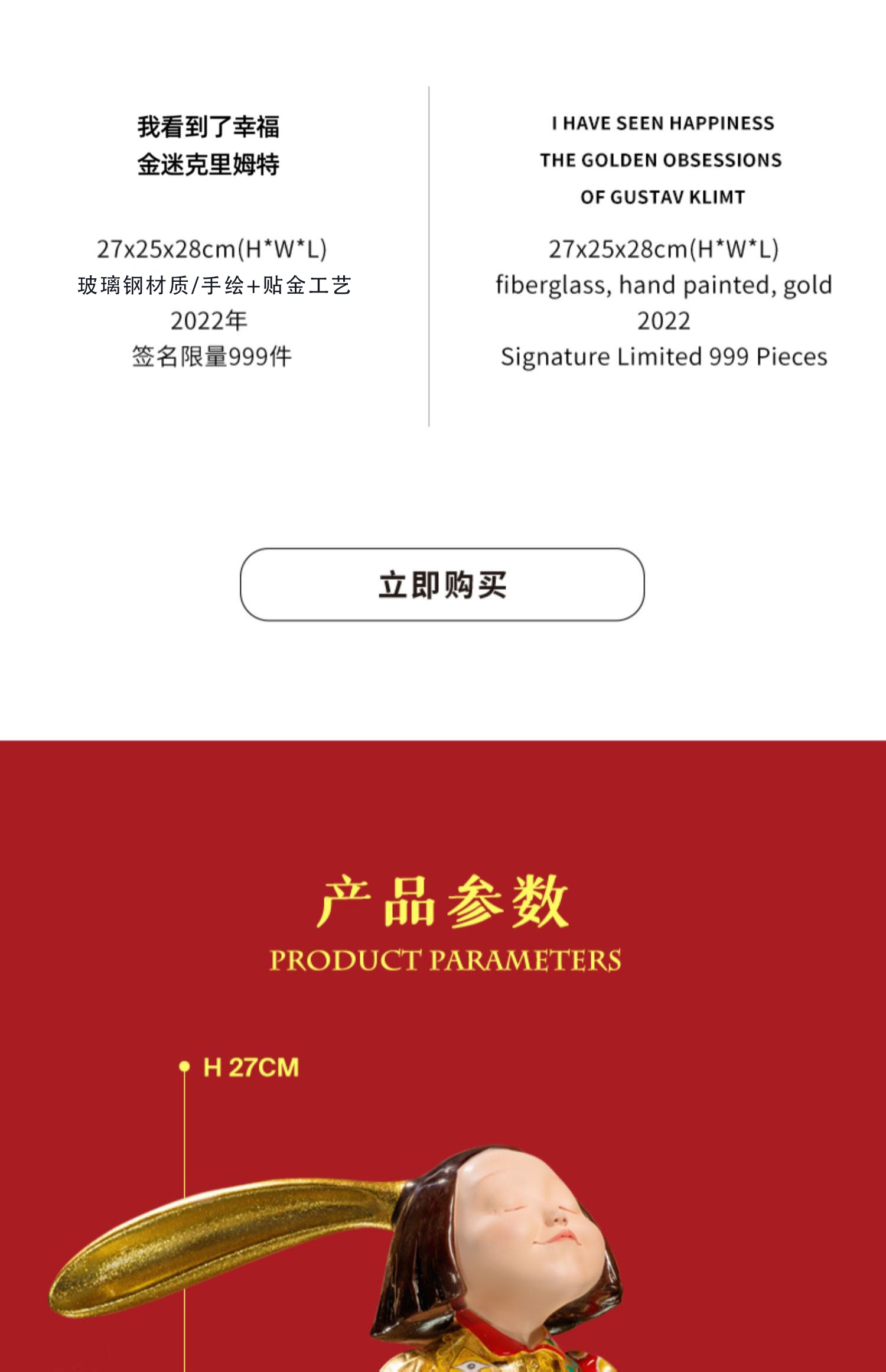 稀奇艺术向京《我看到了幸福》克里姆特金色雕塑摆件结婚礼物