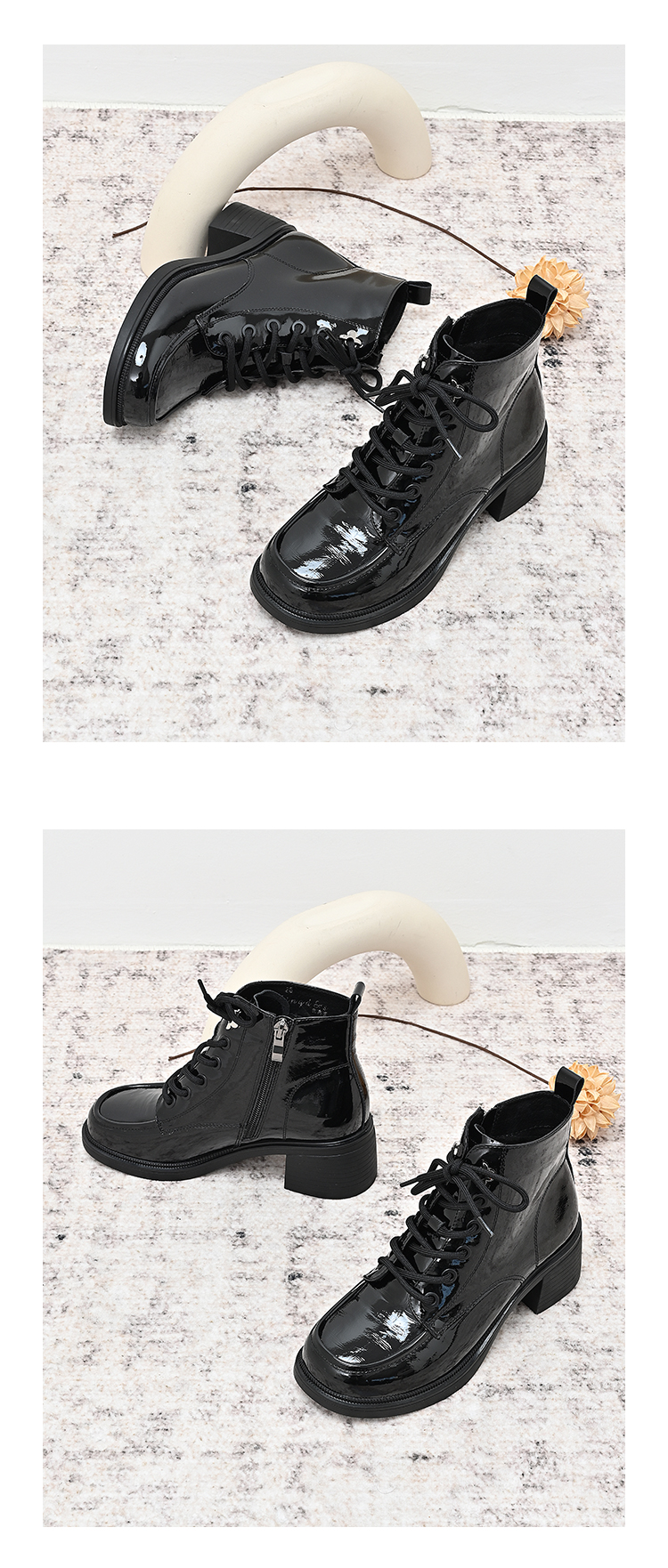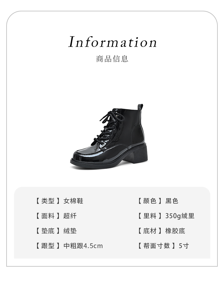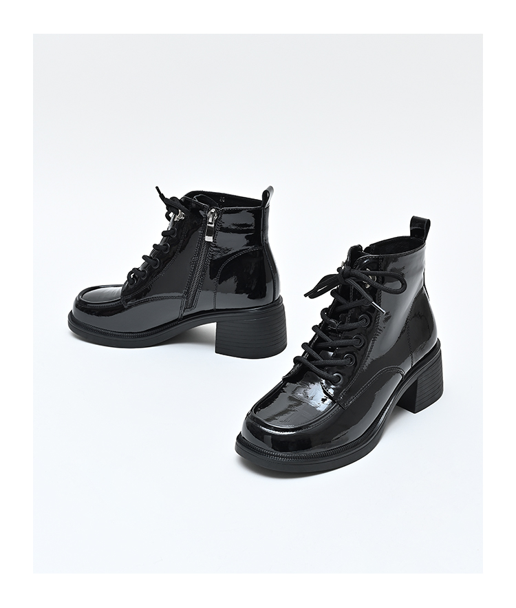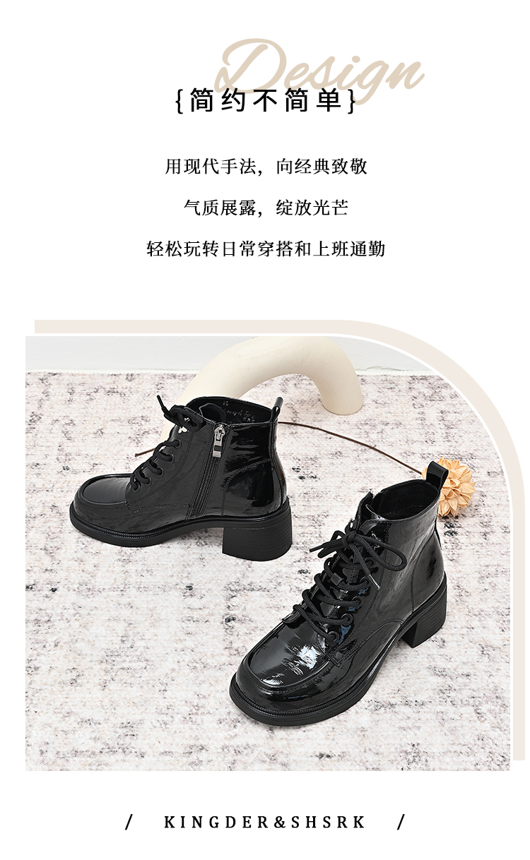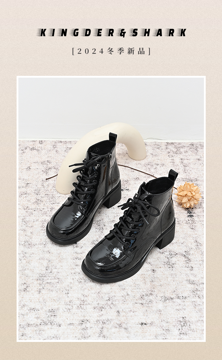 经典鲨2024年冬季新款百搭圆头侧拉链加绒中粗跟气质短靴女KC19-D58211