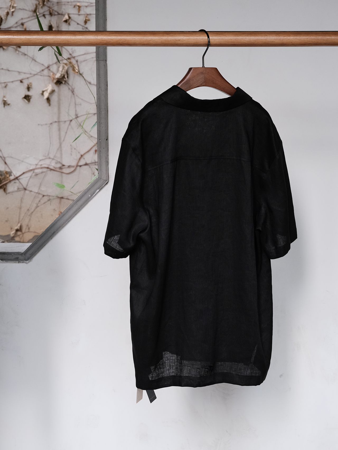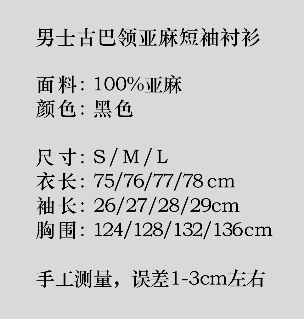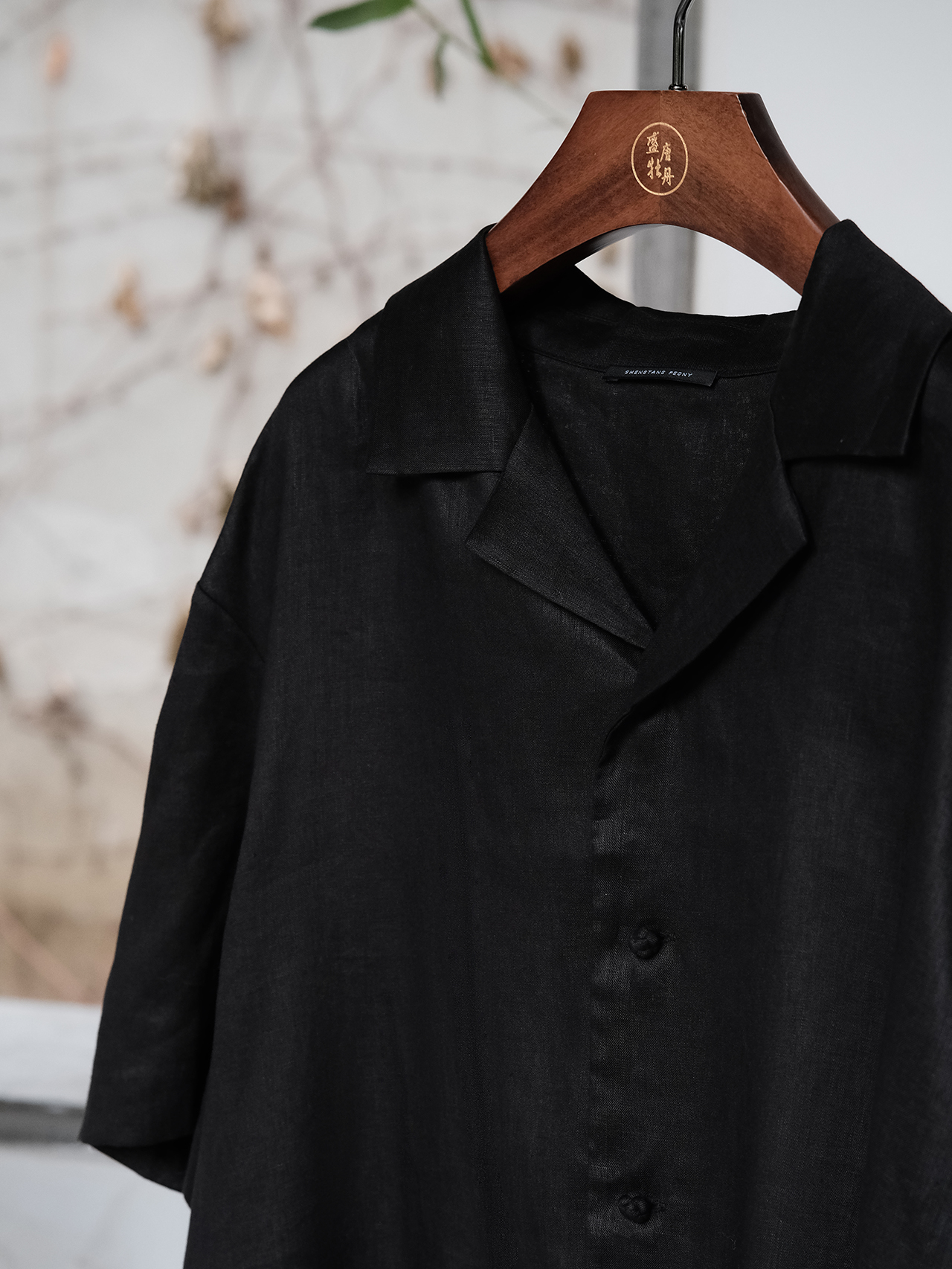盛唐牡丹 |男款尝鲜价 |男士古巴领亚麻短袖衬衫-黑色