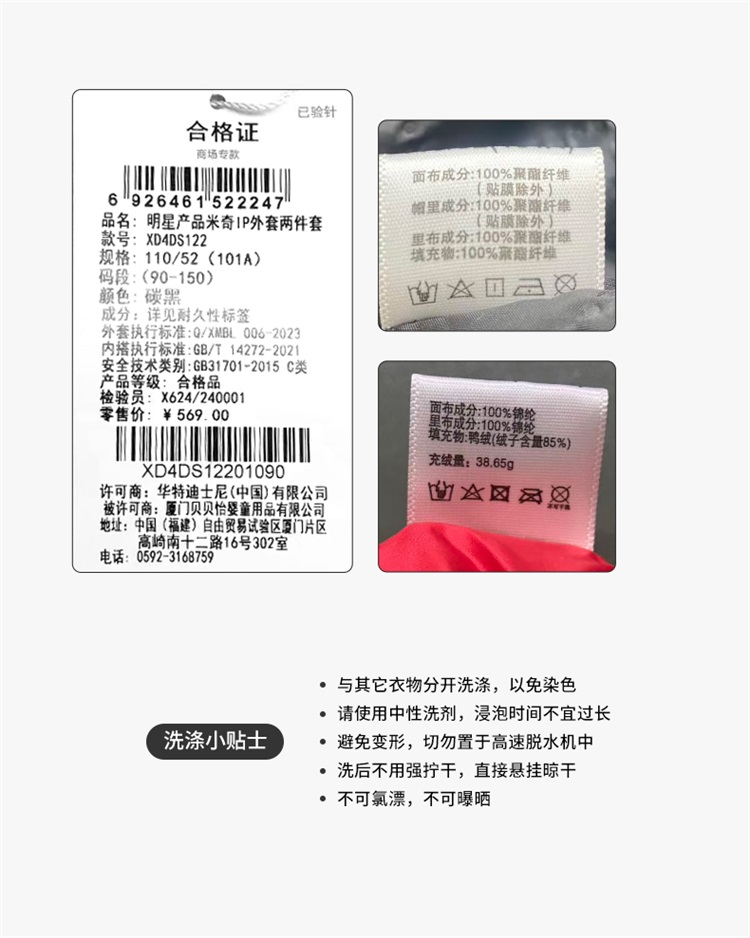 迪士尼男童冬款羽绒外套(两件套)冲锋衣两件套XD4DS122
